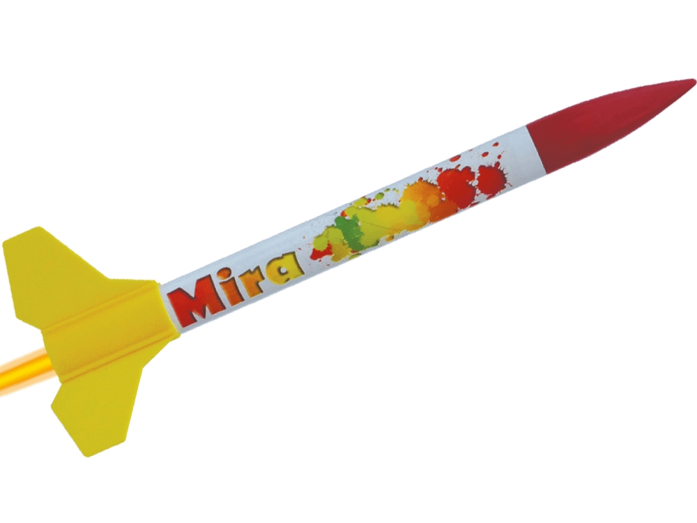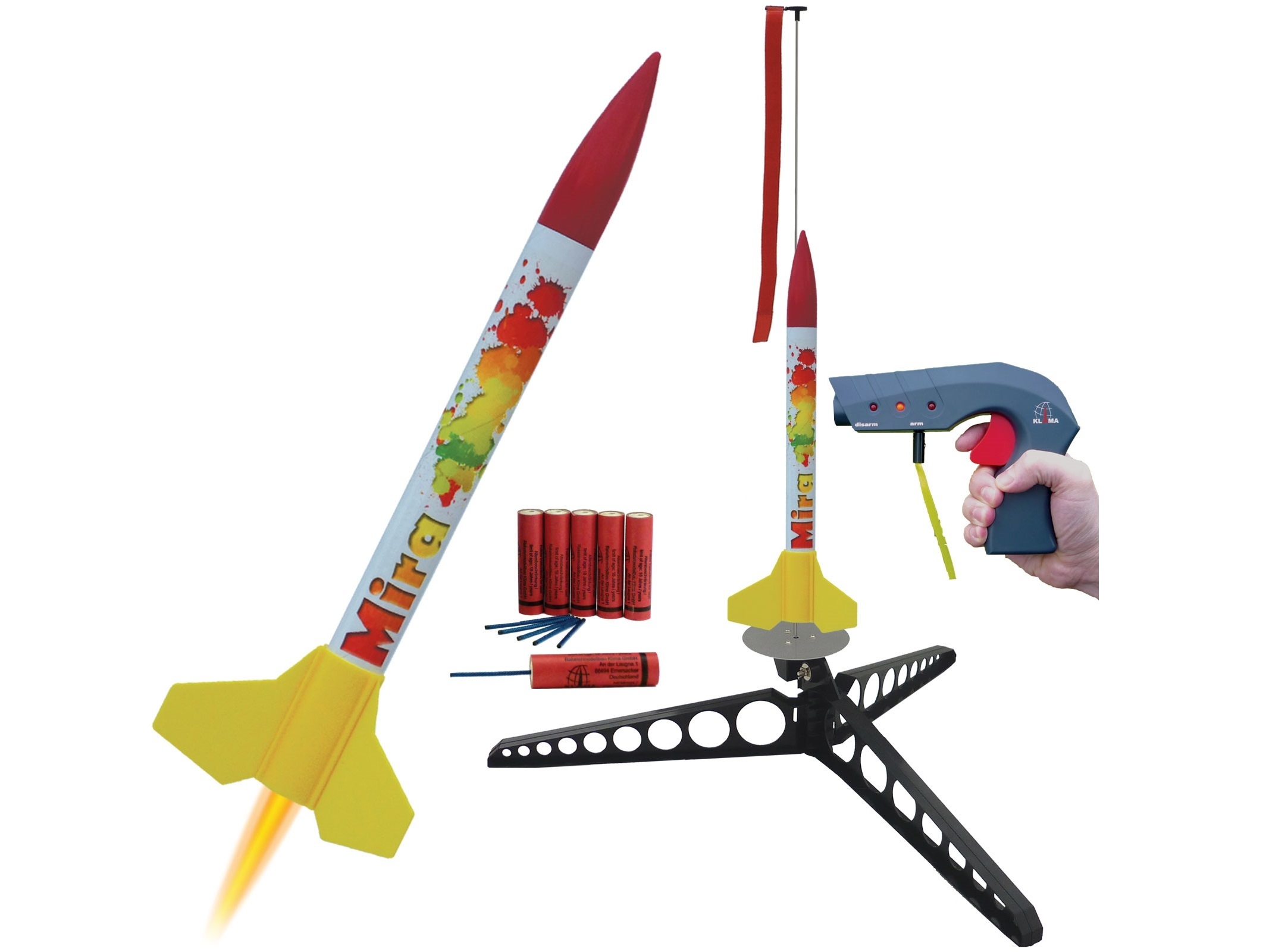 In dem Starterset ist neben dem Quick and Easy Raketenmodellbausatz eine zerlegbare, neigungsverstellbare Startrampe und ein elektronisches Zündgerät enthalten. Zusätzlich enthalten sind 6 Treibsätze (Motoren) vom Typ A6-4 mit Elektroanzünder und Schutzwatte. Die Modellrakete Mira ist ein kompaktes und flinkes Modell welches nach einem wundersamen Doppelstern-System benannt wurde. Bekannt ist dieses für seinen ungewöhnlichen bunten Schweif. Das Modell ist schnell und einfach zusammengebaut und wird mit einem grossen farbigen Aufkleber verziert. Ein Lackieren des Modells ist nicht erforderlich. Ein Fallschirm zur sicheren Bergung ist im Bausatz ebenfalls vorhanden.