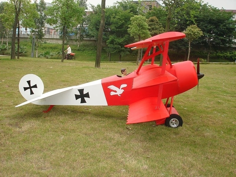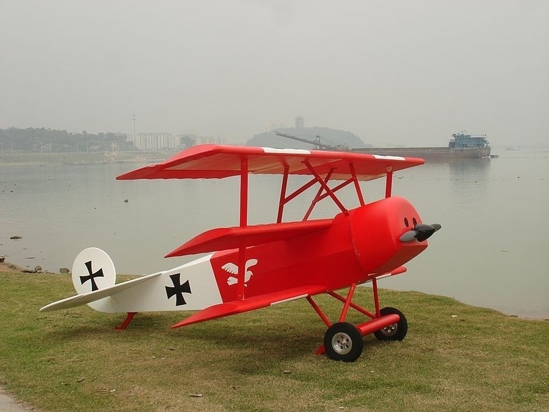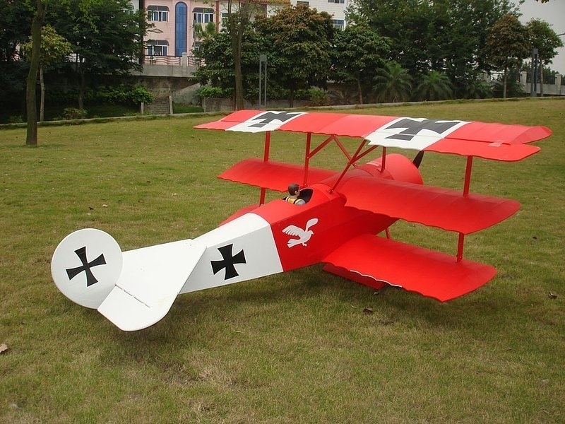 Extra grosse SCALE Fokker DR-1. Das Modell verfügt über einen GFK-Rumpf, die Tragflächen sind in extra starker Holzausführung gefertigt.