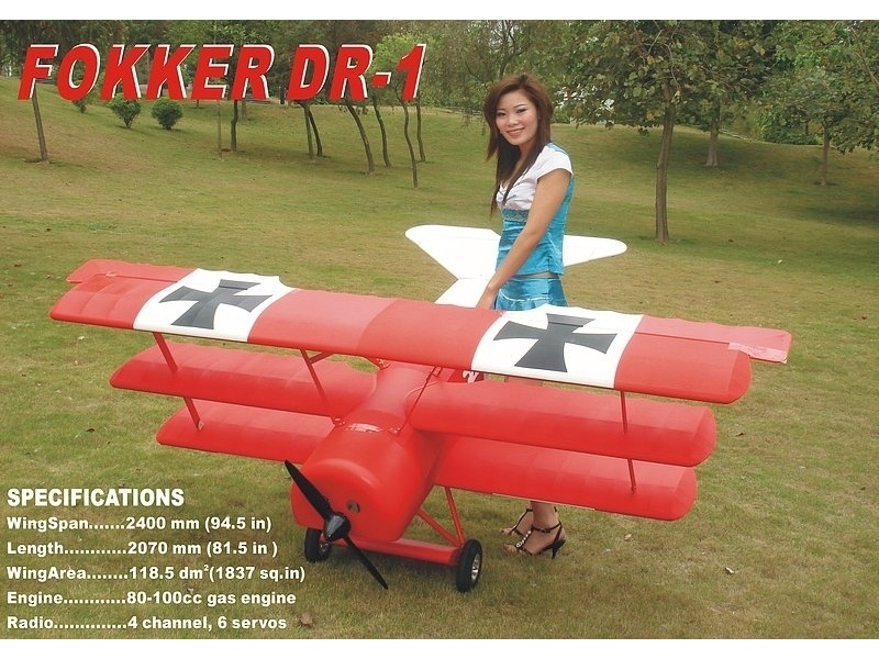 Monster Fokker DR-1, 100ccm, Spw 2400mm, ARF-Modell von CYModel