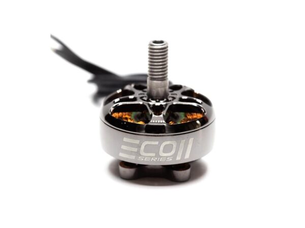 Die neue ECO-Serie II ist in einem 12N14P-Design konzipiert und bringt ohne Silikonkabel 28.3 Gramm auf die Waage. Die Motoren kommen mit einer 4mm Stahlhohlwelle, einer verschraubten Glocke – statt C-Clip und EZO-Kugellager daher. Die Propellerbefestigung wurde mittels M5-Gewinde gelöst.