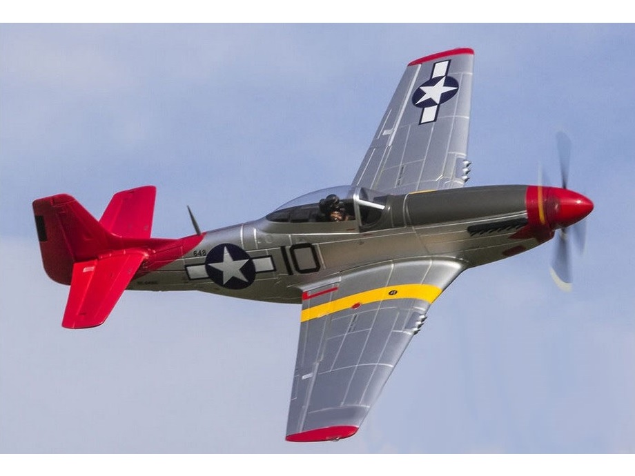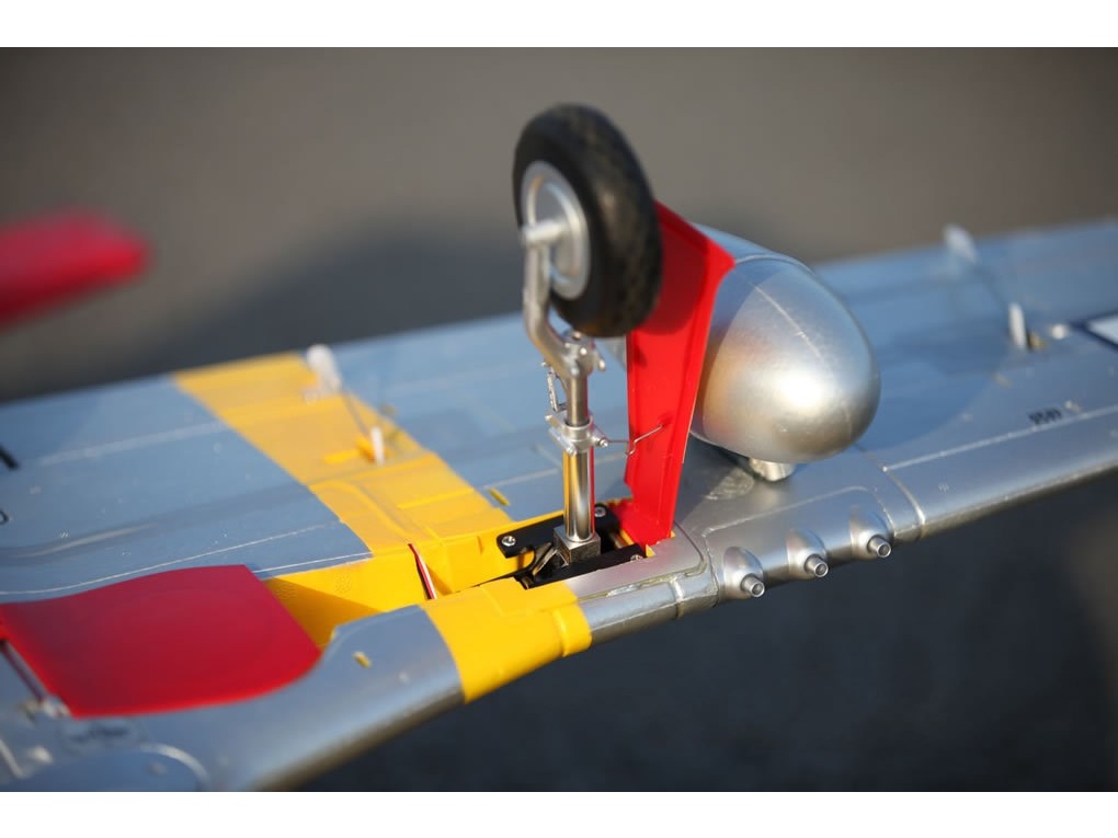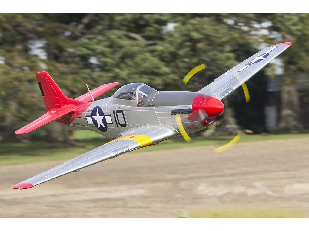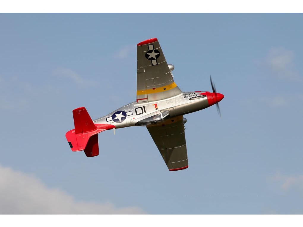 Die P-51 besticht durch eine detailgetreue Optik mit vielen Details. Das Modell verfügt über Landeklappen und ein elektrisches Einziehfahrwerk. Angetrieben wird die Mustang durch einen starken Brushless-Outrunner in Kombination mit einem 70A-Brushless-Regler und einem 4-Blatt Propeller. Tiefflug, Rollen und schnelle Turns in Luftkampf-Manier sind eine wahre Freude mit diesem Modell.