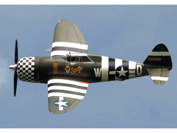 Erstklassige P-47 mit GFK-Rumpf und vielen Details, Flügel in extra starker Holzausführung, vollbeplankt. Ein absolut TOP verarbeitetes Semi-Scale Modell in bewährter CYModel Qualität, mit vielen Details. Alle Bauteile sind fertig lackiert und bespannt. Zum Bausatz gehören alle Anlenkungsteile und viel Zubehör jedoch ohne Fahrwerk.