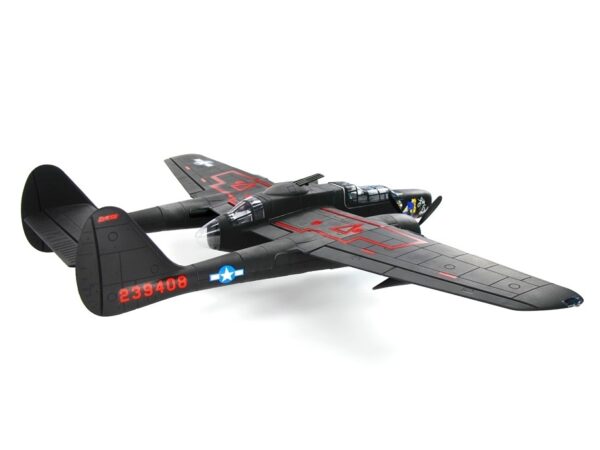 Die Northrop P-61 Schwarze Witwe war das erste Kampfflugzeug der US-Streitkräfte, welches speziell für die Nachtjagd im Zweiten Weltkrieg entwickelt wurde. Der Twin-Bomber verfügt über ein 3-Bein-Fahrwerk, vielen Details und einer genialen Scale-Optik.