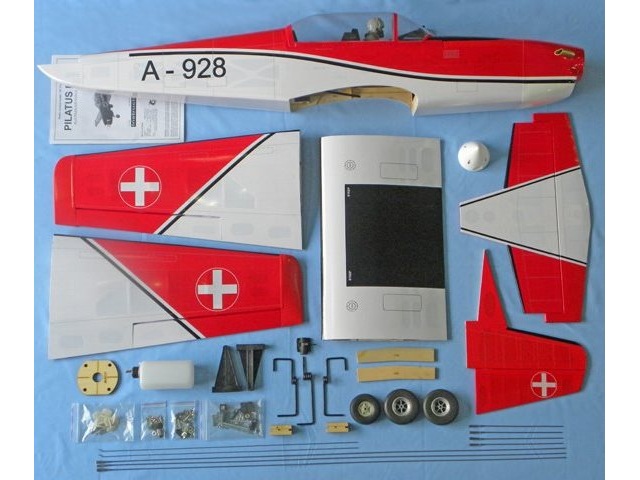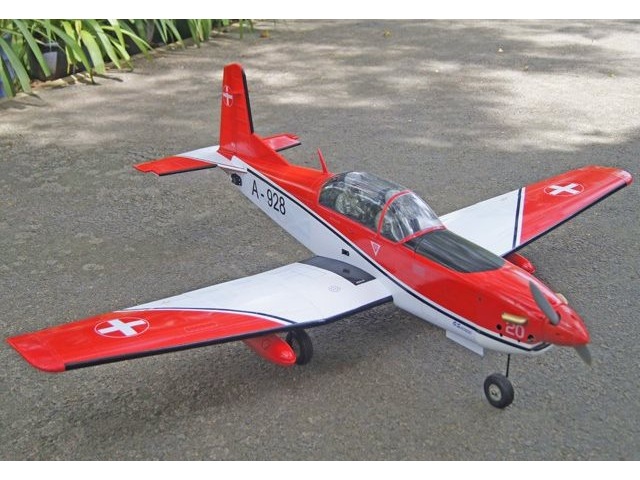 Die Pilatus PC-7 ist im Original ein zweisitziges Schulflugzeug, das mit einem Turboprop Antrieb ausgestattet ist. Das hier abgebildete Modell wurde liebevoll mit vielen Details ausgestattet und besticht durch das originalgetreue Aussehen. Das Modell ist für Elektromotoren geeignet. Die PC-7 besitzt vorne auf dem Rumpf eine grosse, magnetische Akkuklappe für einen schnellen Akkuwechsel. Mit den grossen, beiliegenden Rädern sind Starts und Landungen auch auf unbefestigten Pisten oder auf Rasen kein Problem mehr.