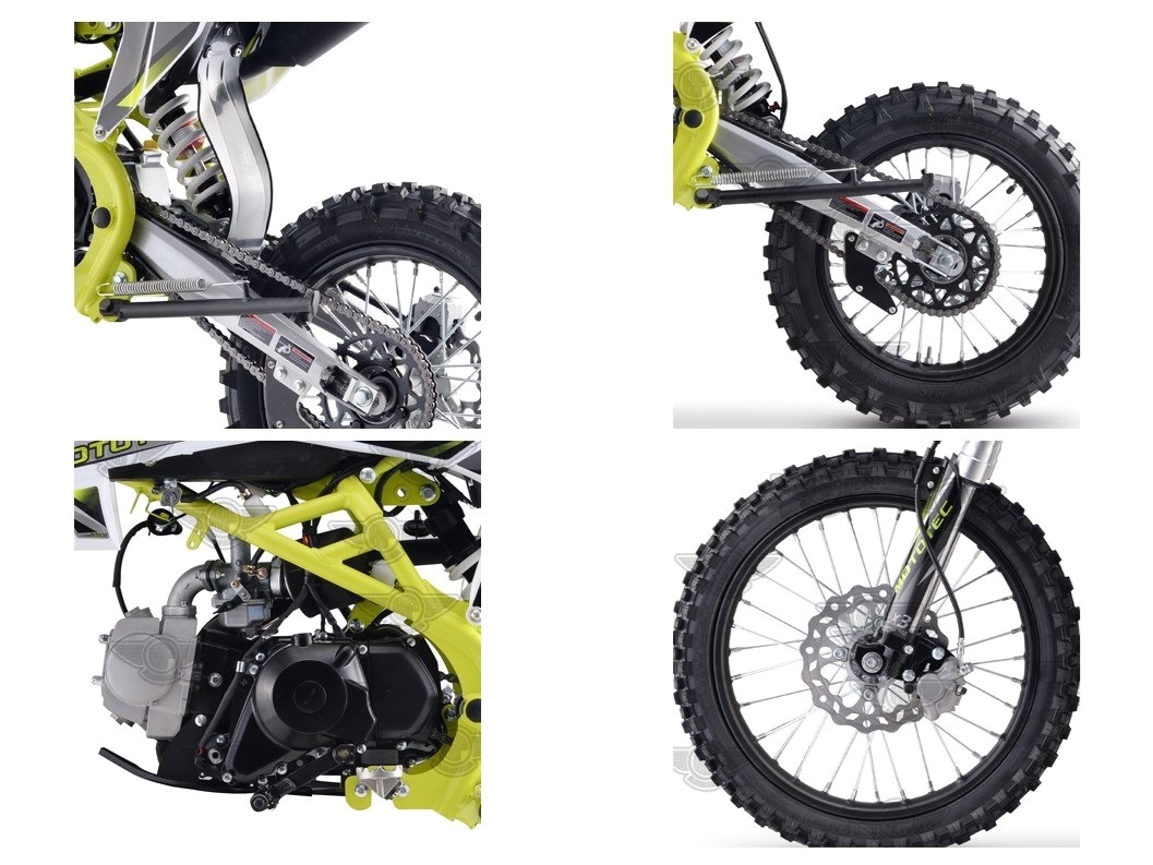Dieses Bike erreicht dank einem starken 125ccm Motor eine TOP-Geschwindigkeit und überrascht durch eine extreme Beschleunigung. Dank den grossen Profil-Reifen finden Sie auch im Gelände oder auf unbefestigten Wegen immer die perfekte Kampflinie.