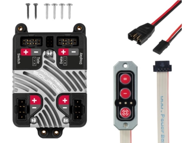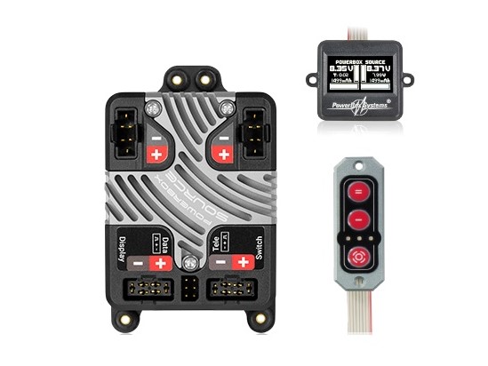 Die PowerBox Source ist die konsequente Weiterentwicklung der erfolgreichen BaseLog. Kundenwünsche und Anforderungen an moderne Telemetrie Systeme wurden mit eingepflegt. Die Baugrösse konnte durch Optimierung der Kühlflächen verkleinert werden. So kann die PowerBox Source auch für kleine Modelle mit hohem Strombedarf verwendet werden. Die Leistungsreserven des kleinen Energiebündels sind enorm und stehen selbst den grösseren Weichensystemen in nichts nach.