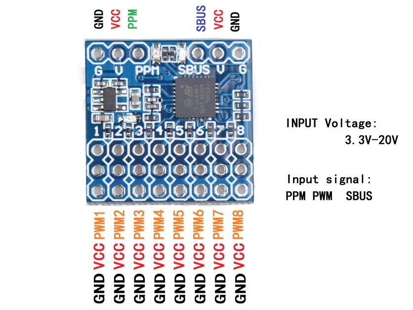 PWM PPM SBUS Signal Converter Modul – 8-Kanal – 3.3-20 Volt
