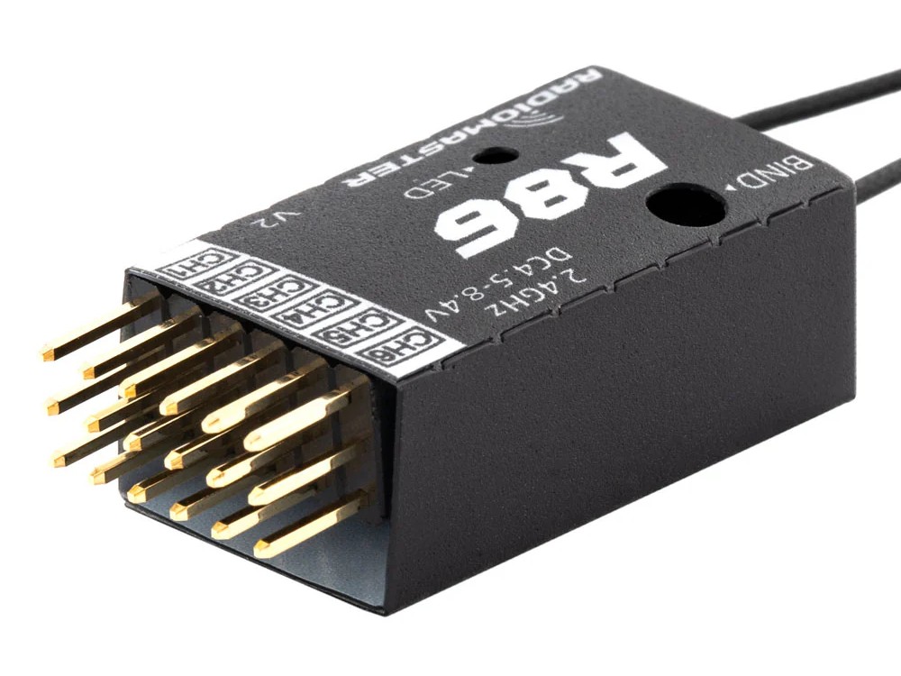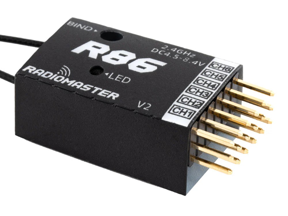Der RadioMaster R86 V2 ist ein vielseitiger 6-Kanal-Empfänger, der mit den Protokollen FrSky D8, FrSky D16 und Futaba SFHSS kompatibel ist. Dank seiner kompakten Abmessungen von 28 x 16.5 mm und einem Gewicht von nur 4.8 g eignet er sich ideal für verschiedene RC-Modellbauanwendungen.