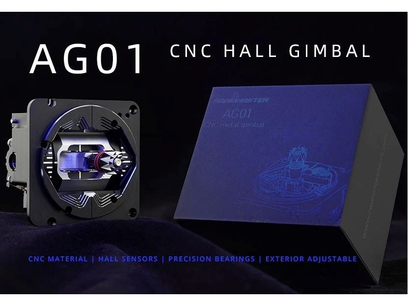 Das AG01 Gimbal ist vollständig CNC-gefräst. Für die ultimative Präzision und ein perfektes Gefühl ist das Gimbal mit Quad-Kugellagern ausgestattet. Dank der einfach zugänglicher Spannungs- und Federwegseinstellung sind Feinabstimmung im Nu erledigt. Diese Max Editon-Version verfügt über eine Frontplatte im Carbon-Look und CNC-gefertigten Komponenten und Tasten.