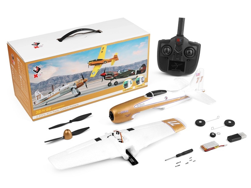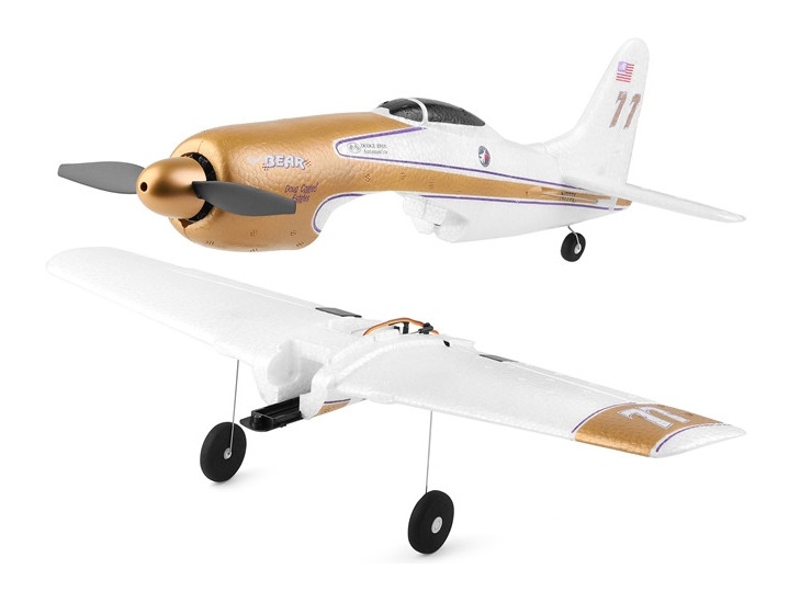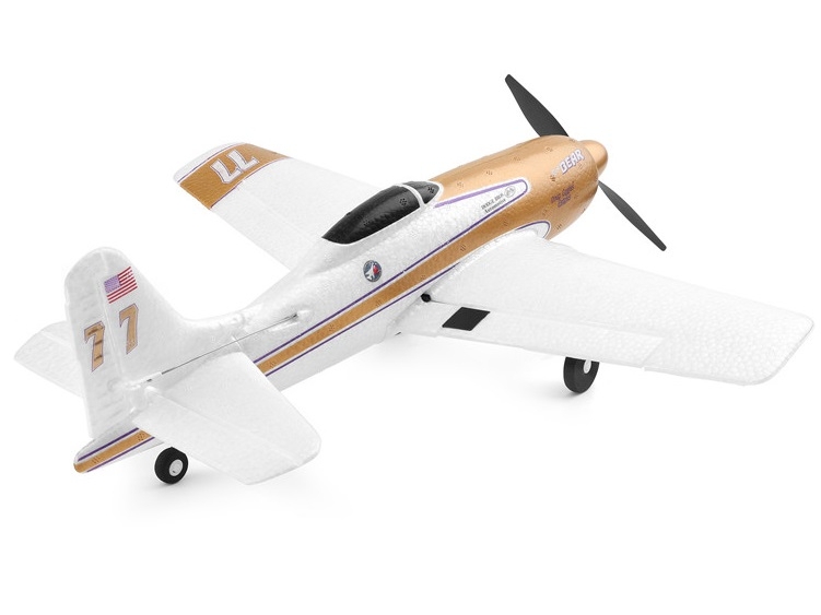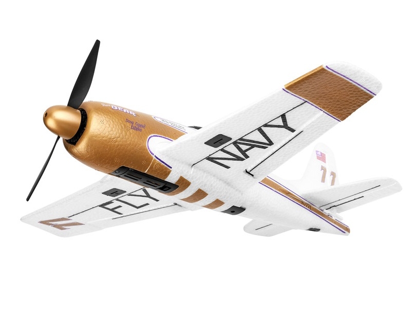 Dieser kleine Warbird wird als RTF-Komplett-Set angeboten. Der Motor und die komplette Elektronik sind bereits verbaut oder installiert. Weiter gehören auch der Akku, die RC-Anlage und ein 6-Achsen-Gyro zum Lieferumfang. Dank des integrierten 6-Achs-Gyro fliegt dieses Modell sehr ruhig und kann auch von Piloten mit wenig Erfahrung gut kontrolliert werden.