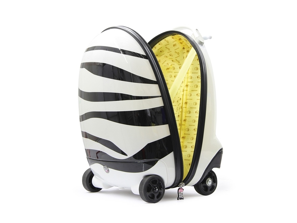 Der Kinderkoffer im Zebra-Design ist der ideale Reisebegleiter für Kinder. Der Koffer bietet viel Stauraum für Kleidung, Spielsachen und alles, was Kinder sonst noch so benötigen. Die zwei grossen Fächer sind durch eine Trennwand mit Reissverschluss geteilt. Der enthaltene Spanngurt sorgt dafür, dass auch alles gut befestigt und verstaut werden kann. Das Beste an diesem Koffer ist, er kann nicht nur mit dem ausziehbaren Griff gezogen werden, sondern auch mit einer Fernsteuerung gesteuert werden. So kommt keine Langeweile auf und lange Wartezeiten am Flughafen oder Bahnhof vergehen wie im Fluge.