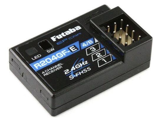 Der Futaba R204GF-E ist ein S-FHSS-Empfänger mit vier Kanälen für Futaba Car-Anlagen. Er eignet sich dank seiner geringen Grösse und der integrierten Antenne besonders für Autos und Crawler im Massstab 1:10 und 1:12.