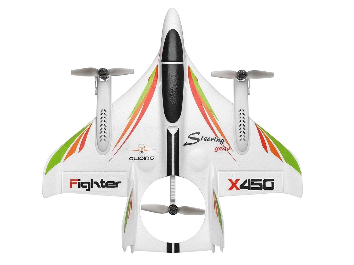 Das Modell im RTF-Komplett-Bausatz mit Gyro überzeugt durch sehr gute Flugeigenschaften. Der X450-Fighter verfügt über drei verschiedene Flug-Modis. Das Modell lässt sich wie ein herkömmlicher RC Multicopter steuern, es ist aber auch ein Vertikal-/ und Horizontal-Flug möglich. Ein absolutes Spass-Modell für angehende und auch geübte Piloten.