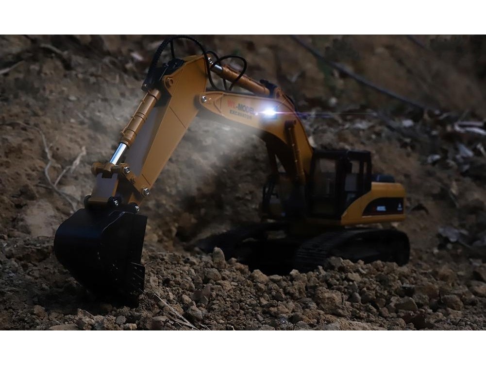 Dieser kleine Bagger mit realistischem Soundmodul, LED-Beleuchtung und dem Rauchmodul wird Sie begeistern. Die Schaufel aus Metall, der Vorderarm und Hauptarm sind einzeln steuerbar. Der Oberwagen ist um 360-Grad schwenkbar und mit dem kraftvollen Kettenantrieb aus Metall kommt man fast überall hin! …und wenn nicht, kann einfach mit der Schaufel nachgeholfen werden, genau wie beim grossen Vorbild.