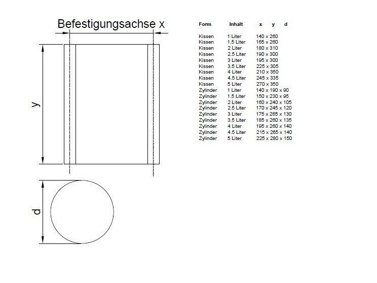 Beuteltank Zylinderform, 3.5 Liter Inhalt – Jet-Version