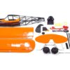 Die Tragflächen des Modells wurden in Rippenbauweise erstellt. Alle Holzteile sind bereits bespannt und bestechen durch ihre saubere Verarbeitung. Weiter liegt dem Bausatz eine Motorhaube und ein Fahrwerk-Set bei.