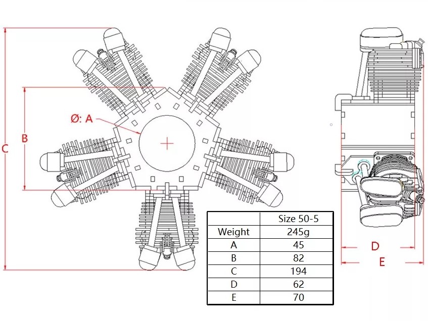 Standmodell Scale Motor 50mm – 5-Zylinder