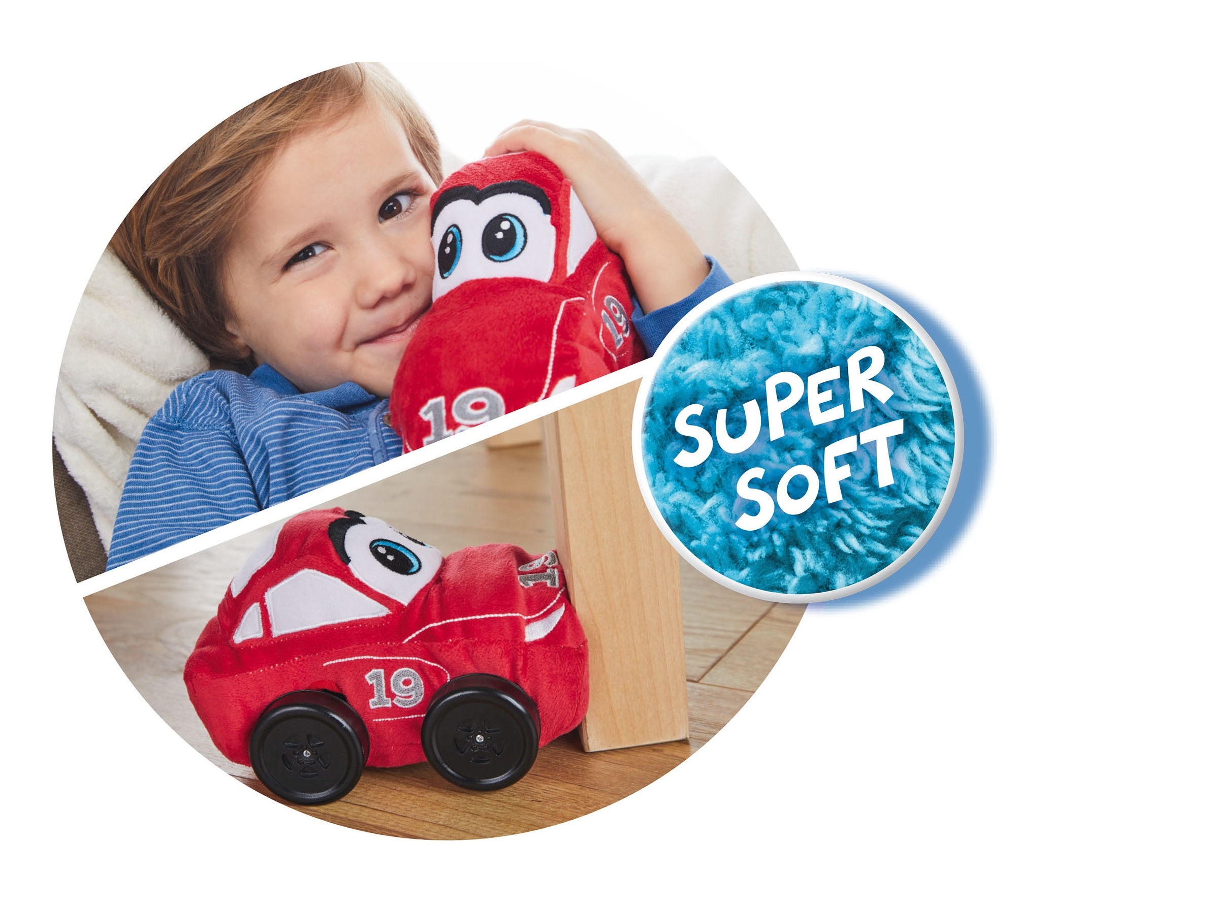 Wenn der weiche Plüschbezug schmutzig wird, kann er einfach in der Waschmaschine gewaschen werden – wie in der Waschstrasse. Mama und Papa müssen sich übrigens keine Sorgen machen, dass dein Rennauto alles umfährt. Damit du lernen kannst, wie du es steuern musst, fährt es nämlich gar nicht so schnell. Und das weiche Plüsch und die Gummireifen zerkratzen weder Möbel noch den Boden.