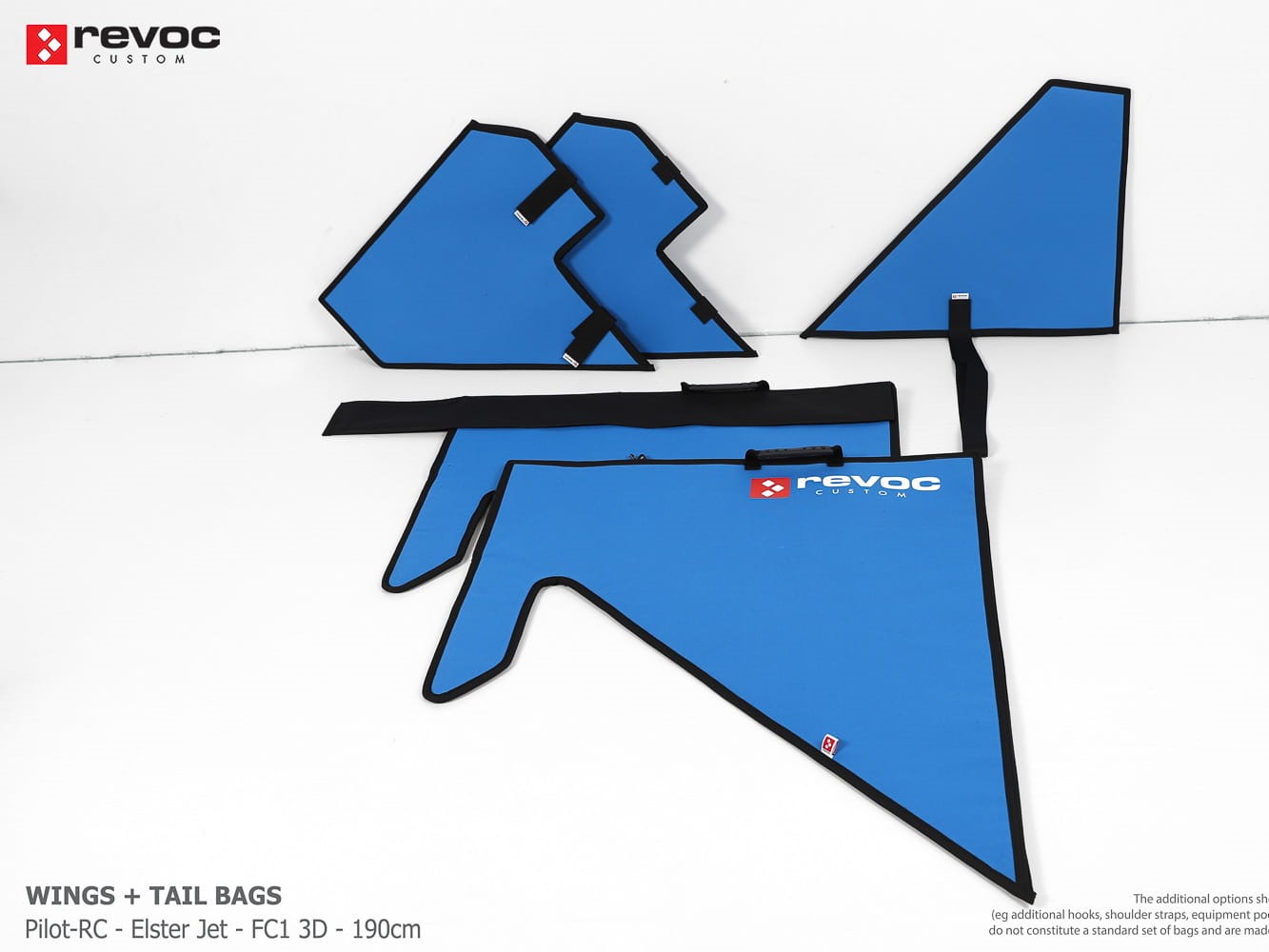 revoc Flächentaschen Set + Seitenleitwerk- + Höhenrudertasche blau FC1 Elster Pilot-RC