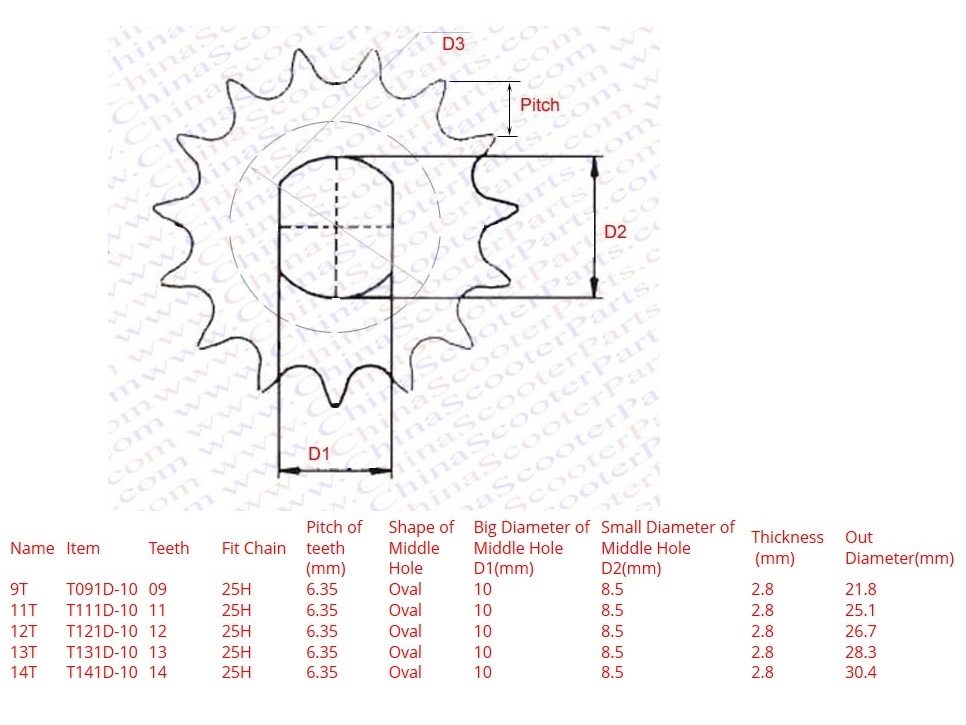 Ritzel / Zahnrad 9 Zähne – 10×8.5mm für Kette 6.35mm – 25H