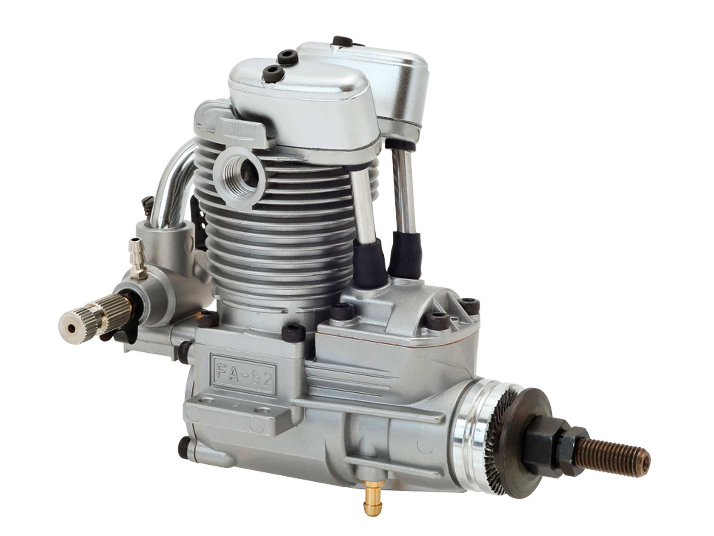 Der FA-62B im Gehäuse des 56er Motor. Ideal für Modelle der 40er bis 72er Klasse in Verbindung mit einer 13×6 Luftschraube. Der einteilige Zylinderkopf weist verbesserte Kühlung auf, die doppelt kugelgelagerte Kurbelwelle garantiert Präzision und Langlebigkeit.