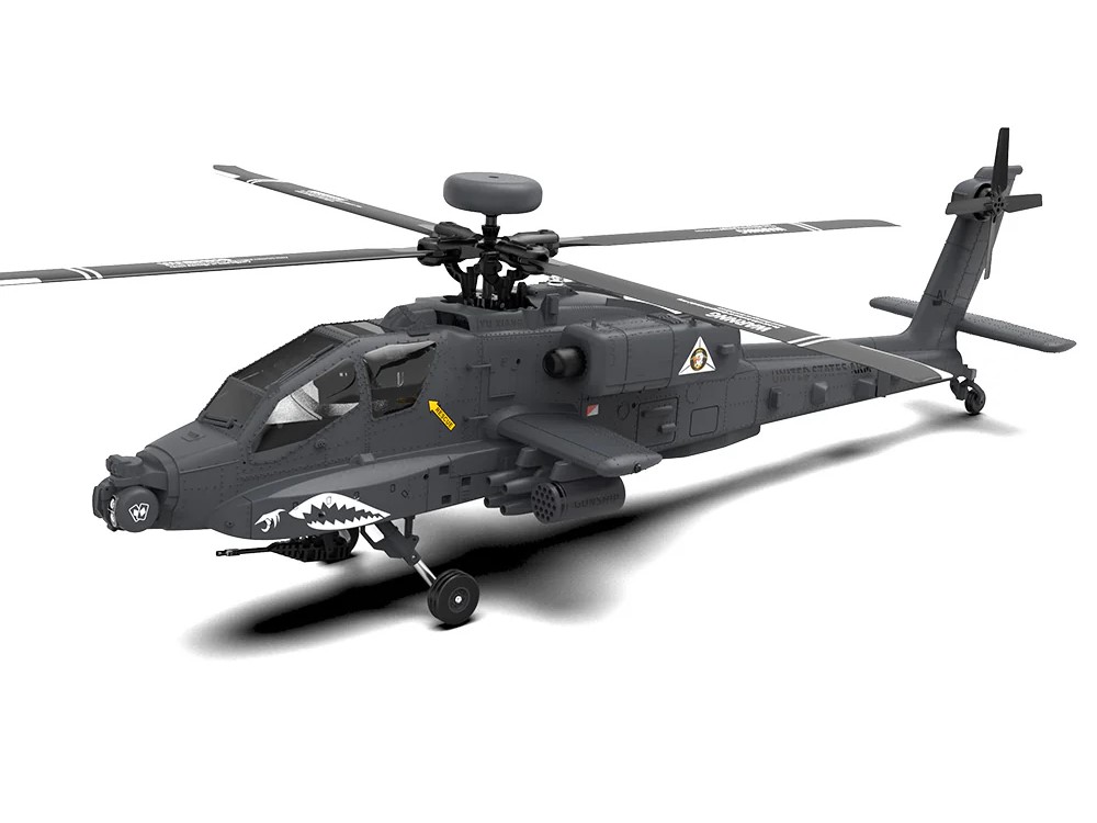 Hochrealistisches Design: Massstabgetreuer Nachbau des Apache AH-64D mit detaillierter Optik wie einem Waffensystem, Luftbetankungssonde, stossdämpfendem Fahrwerk und integrierter Beleuchtung für ein authentisches Erscheinungsbild.