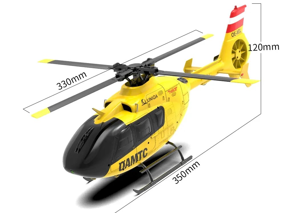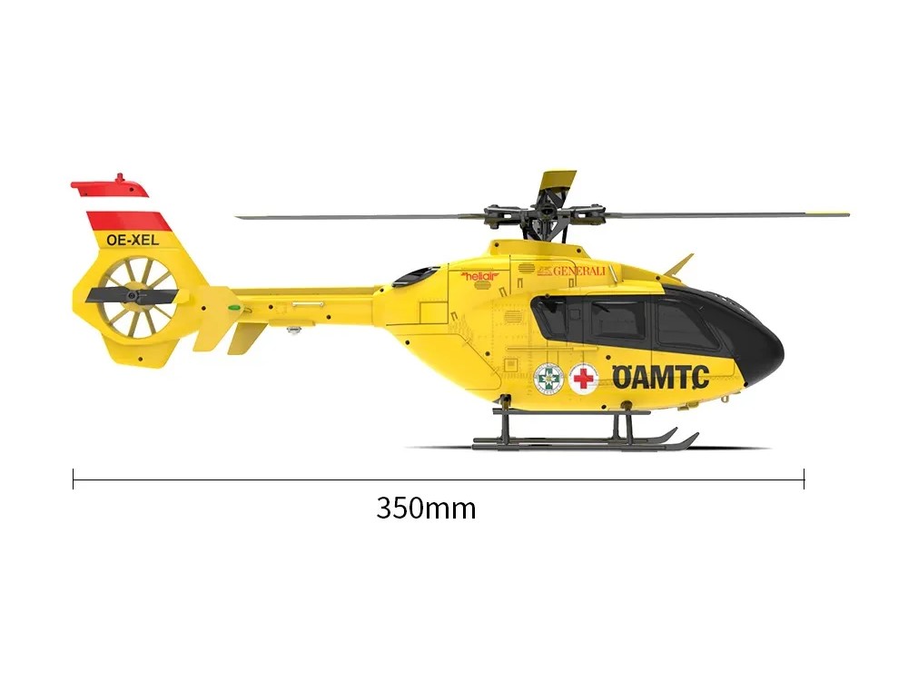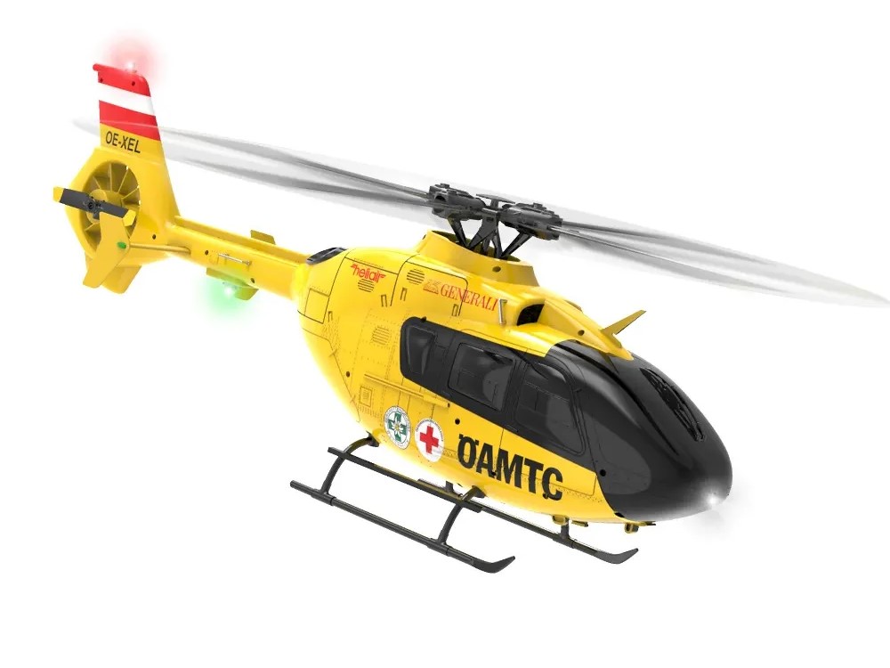 Der Scale Helikopter EC135 im Massstab 1:36 ist ein detailgetreuer Nachbau des bekannten Rettungshubschraubers des österreichischen Automobil-, Motorrad- und Touring Clubs (ÖAMTC). Dieses Ready-to-Fly Set bietet sowohl Einsteigern als auch erfahrenen Piloten ein beeindruckendes Flugerlebnis und sorgt durch die integrierte Beleuchtung für ein authentisches Erscheinungsbild. Mit seinem Flybarless-Design, dem 6-Achs-Gyrosystem und leistungsstarken Brushless-Motoren bietet der EC135 stabile Flugeigenschaften und präzise Steuerung.