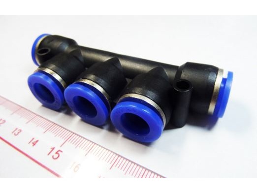 Schlauchkupplung 3-Fach, Steckverbindung 6mm (wie System Festo)