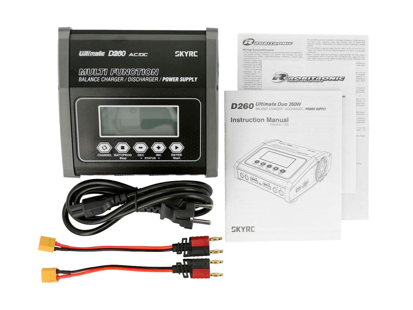 Das SKYRC D260 ist ein 2-Kanal Ladegerät, dass das Laden von Akkus dank seiner intuitiven Bedienung so einfach wie noch nie macht. Mit den beiden voneinander unabhängigen Schaltkreisen können zwei Akkus selbst unterschiedlicher Art gleichzeitig geladen werden. Mit 130 Watt und maximal 14A ist das Ladegerät eine super Lösung für alle RC Modellbauer. Der Lader ist mit fünf Knöpfen und einem LCD-Display mit Hintergrundbeleuchtung ausgestattet.
