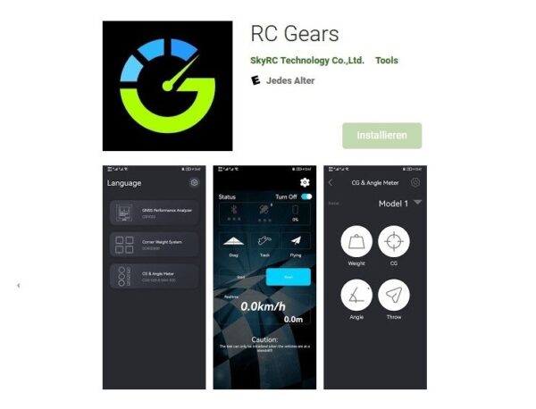 SkyRC bietet nun mit der CG G – Schwerpunktwaage eine geniale und einfache Lösung. Mit diesem System können praktisch alle Flächen-Modelle exakt vermessen werden. Sie erhalten drei Module, welche über Bluetooth mit dem Handy verbunden werden. Die Bluetooth Version 5.0 bietet dabei eine schnelle und stabile Verbindung. Über die App “RC Gears” erhalten Sie alle wichtigen Informationen in Echtzeit.
