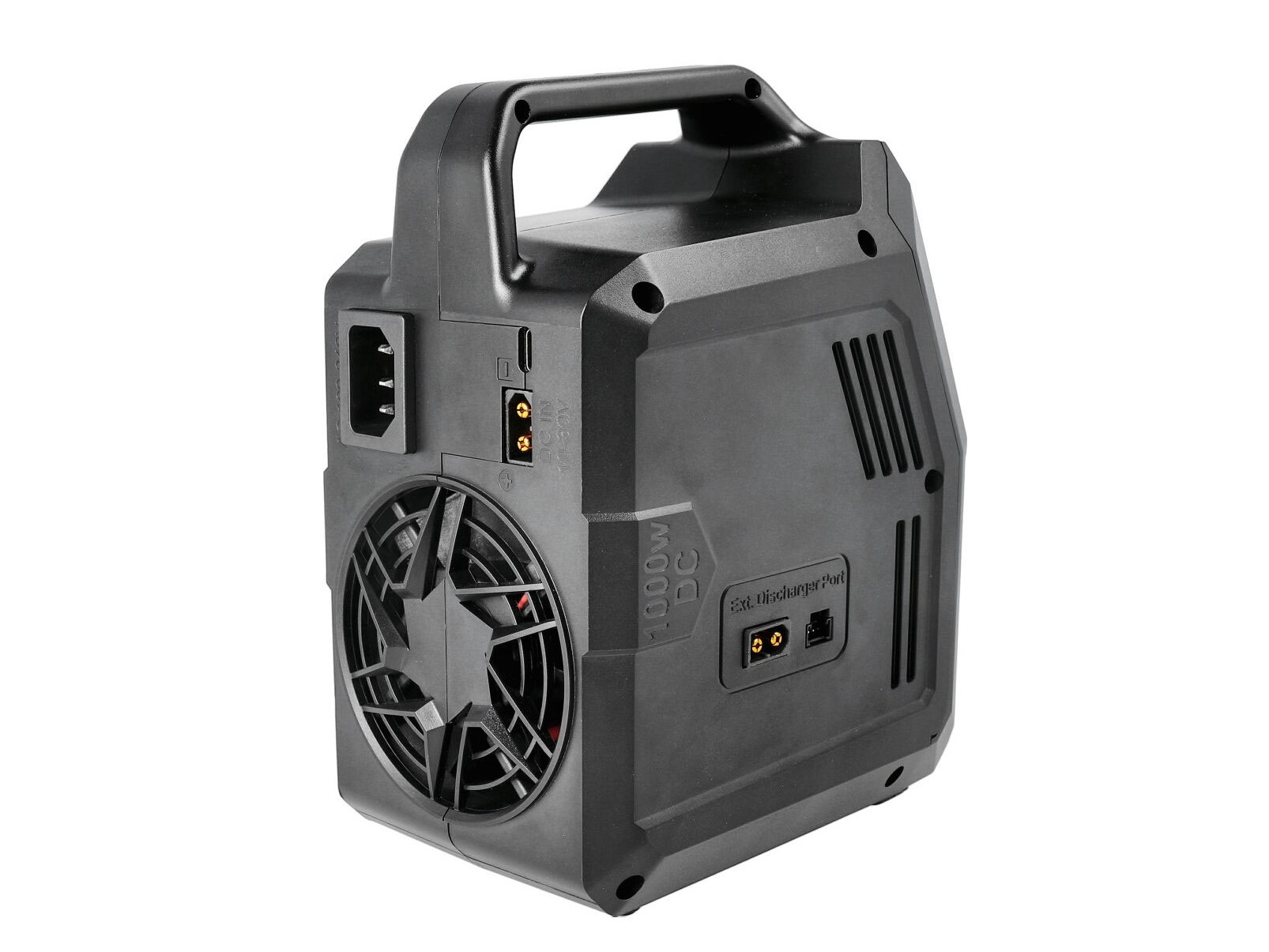 Bei diesem Gerät besteht die Möglichkeit gleichzeitig zwei Akkus – unabhängig zueinander aufzuladen. Je nach Verteilung und fortgeschrittener Aufladung, wird die Ladeleistung intelligent und effizient an die Akkus weitergegeben. Ist gerade nur ein Akku angeschlossen, wird dieser mit der maximalen Leistung versorgt. Im AC-Betrieb liefert das Ladegerät 450 Watt, im DC-Mode sogar 1000 Watt. Weiter kann das T1000 Maestro auch als Stromquelle für andere Geräte eingesetzt werden. Im Betriebsmodus liefert es eine Spannung von 5-27V mit einem einstellbaren Strom von 1-15A.