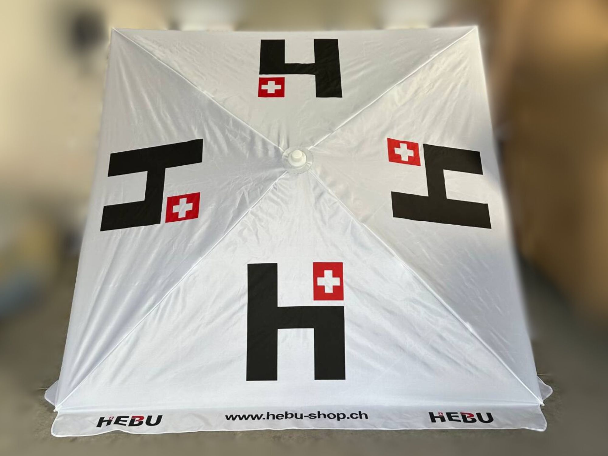 Mit einer Grösse von 200 x200 cm, spendet der Sonnenschirm an heissen Tagen einen grosszügigen Schattenplatz.