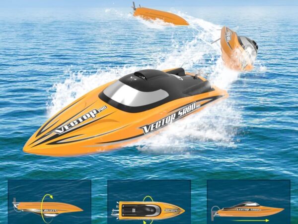 Erleben Sie mit dem Vector SR80 PRO von Volantex High-Speed-Rennsport auf dem Wasser. Dieses leistungsstarke Brushless-Rennboot erreicht bis zu 67 km/h und überzeugt mit einer selbstaufrichtenden Rumpfstruktur für maximale Sicherheit. Die komplett aus Aluminium gefertigte Ruderanlage, Turn Fins und Trimmplatten sorgen für präzise Lenkmanöver und aussergewöhnliche Haltbarkeit – ein besonderes Upgrade der PRO-Version. Dank des ARTR-Sets (Almost Ready to Run) sind nur noch Akku und Ladegerät erforderlich, um durchzustarten.
