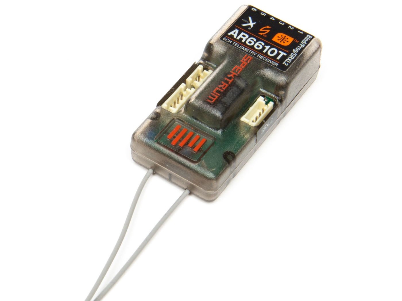 Der Spektrum AR6610T 6-Kanal-Empfänger ist ein DSM2- und DSMX-kompatibler Empfänger mit kompakten Abmessungen für eine Vielzahl von Modellen. Es liefert eine blitzschnelle Eingabe-Ausgabe-Antwort, die sich perfekt für Hochleistungsanwendungen wie 3D-Flugzeuge und Hubschrauber eignet. Er verfügt über eine Full-Range-Telemetrie und ein integriertes Barometer, um Höhen- und Vario-Telemetriedaten ohne zusätzlichen Sensoren zu erfordern. Es ist ein SRXL2-Anschluss für einen separat erhältlichen SRXL2-Satelliten-Empfänger vorhanden, um Signal Ausblendungen und blinde Flecken der Antenne zu eliminieren, die bei 2.4-GHz-Systemen auftreten können.