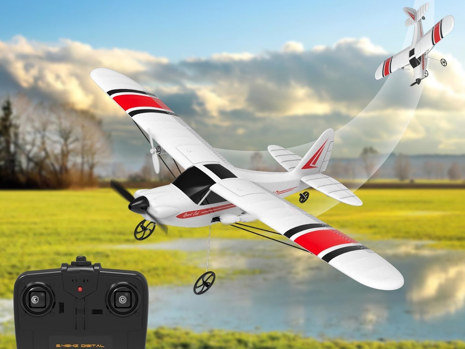 Dieser kleine Hochdecker wird als RTF-Komplett-Set angeboten. Der Motor und die komplette Elektronik sind bereits verbaut oder installiert. Weiter gehören auch der Akku, die RC-Anlage und ein 6-Achsen-Gyro zum Lieferumfang. Dank des integrierten 6-Achs-Gyro fliegt dieses Modell sehr ruhig und kann auch von Piloten mit wenig Erfahrung gut kontrolliert werden.