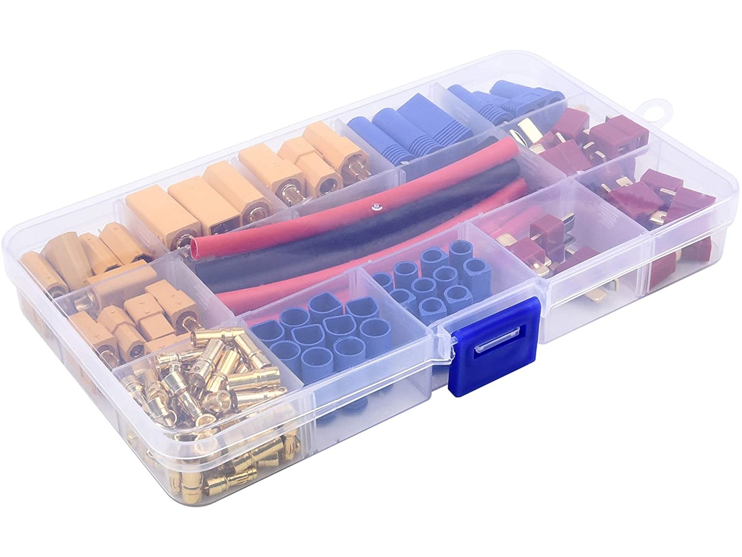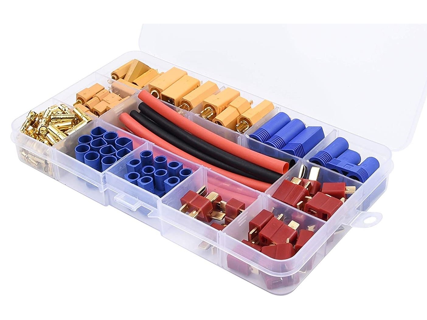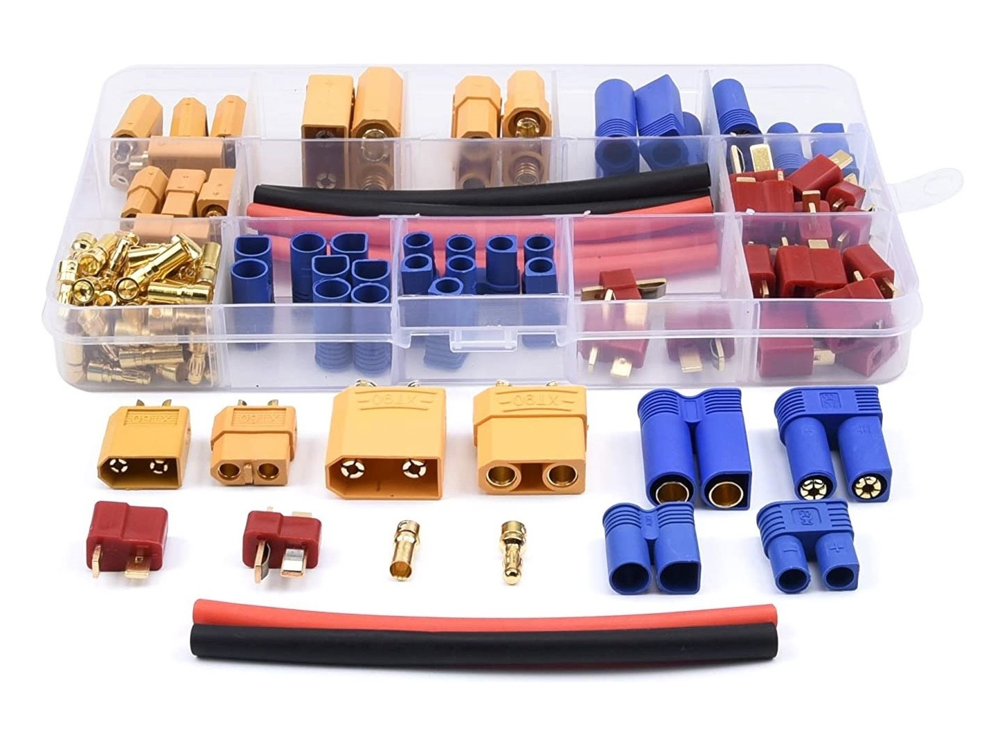 Dieses umfangreiche Stecker-Set bietet eine praktische Auswahl an T-Plug, EC3, EC5, XT60 und XT90 Steckern inklusive passendem Schrumpfschlauch. Ideal für RC-Modelle, Akkukabel, Ladegeräte und DIY-Verkabelungen. Durch die Kombination verschiedener Steckertypen lassen sich Reparaturen und Neuverkabelungen schnell und sauber durchführen.