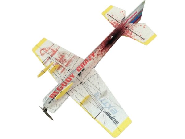 Monster-Querruder, die für Torsionssteifigkeit verstärkt sind, ermöglichen eine noch nie dagewesene Rollrate. Das voll fliegende Leitwerk, das in dieser Indoor-Kategorie nicht oft anzutreffen ist, ermöglicht extrem enge Loops “um den Schwerpunkt” – oder sollten wir lieber Flips sagen? All das macht dieses Flugzeug einzigartig und wir wagen zu behaupten, dass es eines der attraktivsten ist, die wir bisher gebaut haben.