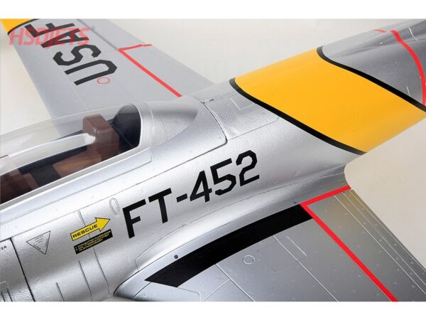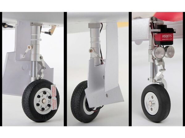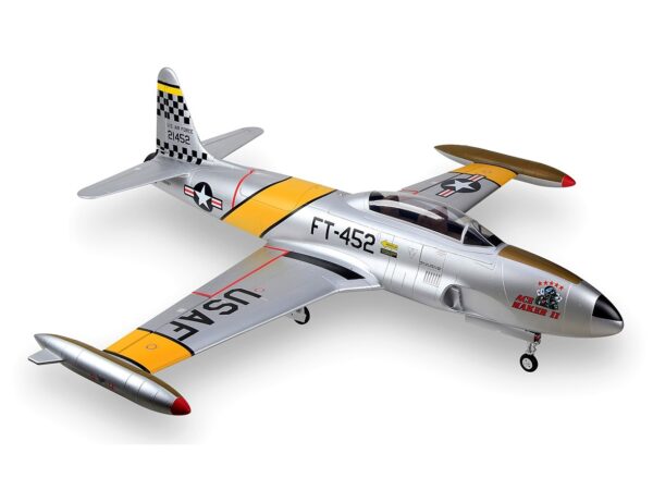 Das Modell aus hochfestem EPO-Foam ist weitgehend vorgefertigt und innert kurzer Zeit bereits flugfertig. Die T33 verfügt über funktionsfähige Landeklappen, ein gefedertes, elektrisches Aluminium-Einziehfahrwerk mit elektrischer Bremse und einer Scale-Beleuchtung. Alle Komponenten wie das gefederte Fahrwerk, die 120mm S-EDF Impeller-Einheit mit Motor, der Regler und die Servos sind bereits eingebaut.