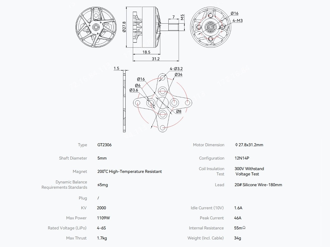 1x T-Motor GT2306 2000KV Brushless Motor