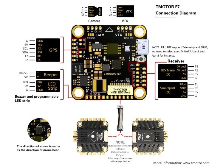 Der erste F7 Flight Controller von T-Motor ist da! Logisches Layout, das nahtlos mit dem T-Motor F45 und F55 ESC zusammenarbeitet.