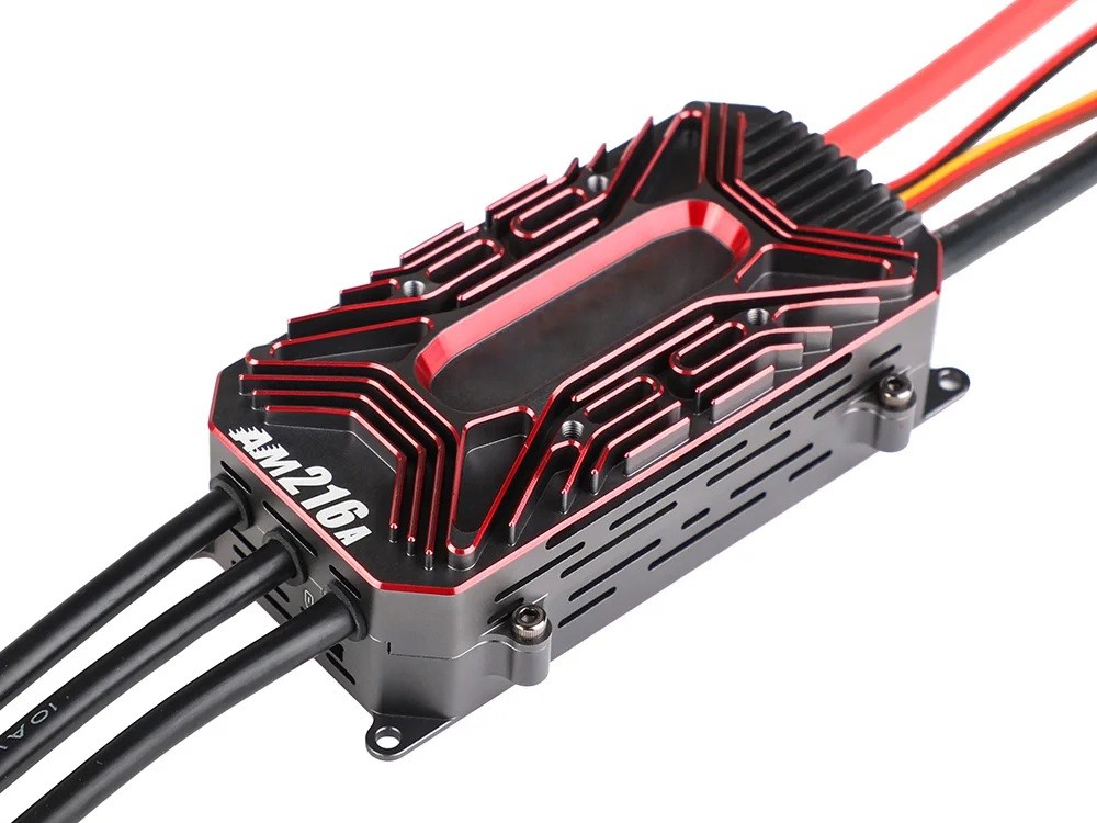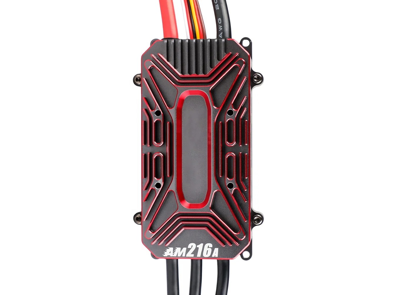Der T-Motor AM216A ESC ist ein Hochleistungsregler, der speziell für 85-95 Zoll Kunstflugmodelle und anspruchsvolle 3D-Manöver entwickelt wurde. Dank seiner Zero-Latency-Technologie reagiert er verzögerungsfrei auf Steuereingaben und bietet maximale Präzision in allen Fluglagen. Mit einer Dauerstrombelastbarkeit von 216A und einer Spitzenleistung von bis zu 12.7 kW liefert dieser Regler enorme Leistungsreserven für grosse Brushless-Motoren.