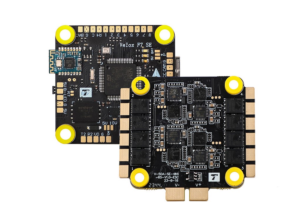 Dieser T-Motor 30.5×30.5 mm Stack besteht aus dem F722 SE Flight Controller und dem Velox V50A SE 4in1 ESC. Diese Kombination ist HD- und Analog kompatibel und unterstützt 8 Motoren und drahtloses Bluetooth. Der Velox F7 SE V50A SE garantiert Ihnen die Leistung, die Sie suchen, egal ob im Freestyle, Cinematic oder Long Range.