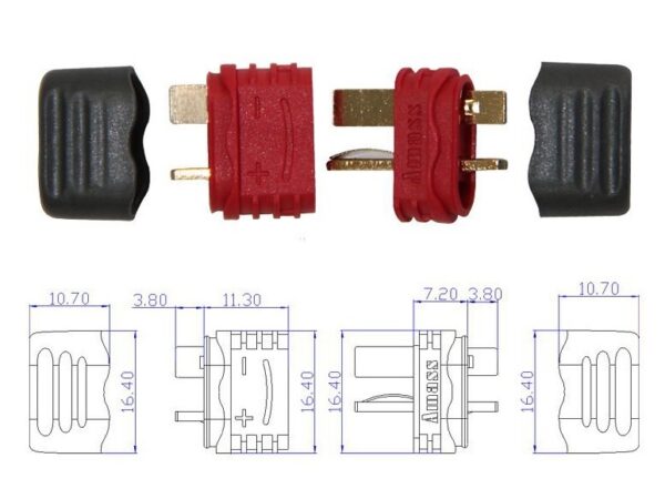 Amass T-Stecker / T-Plug Hochstrom-Stecksystem mit Kabelschutz – 10 Paar
