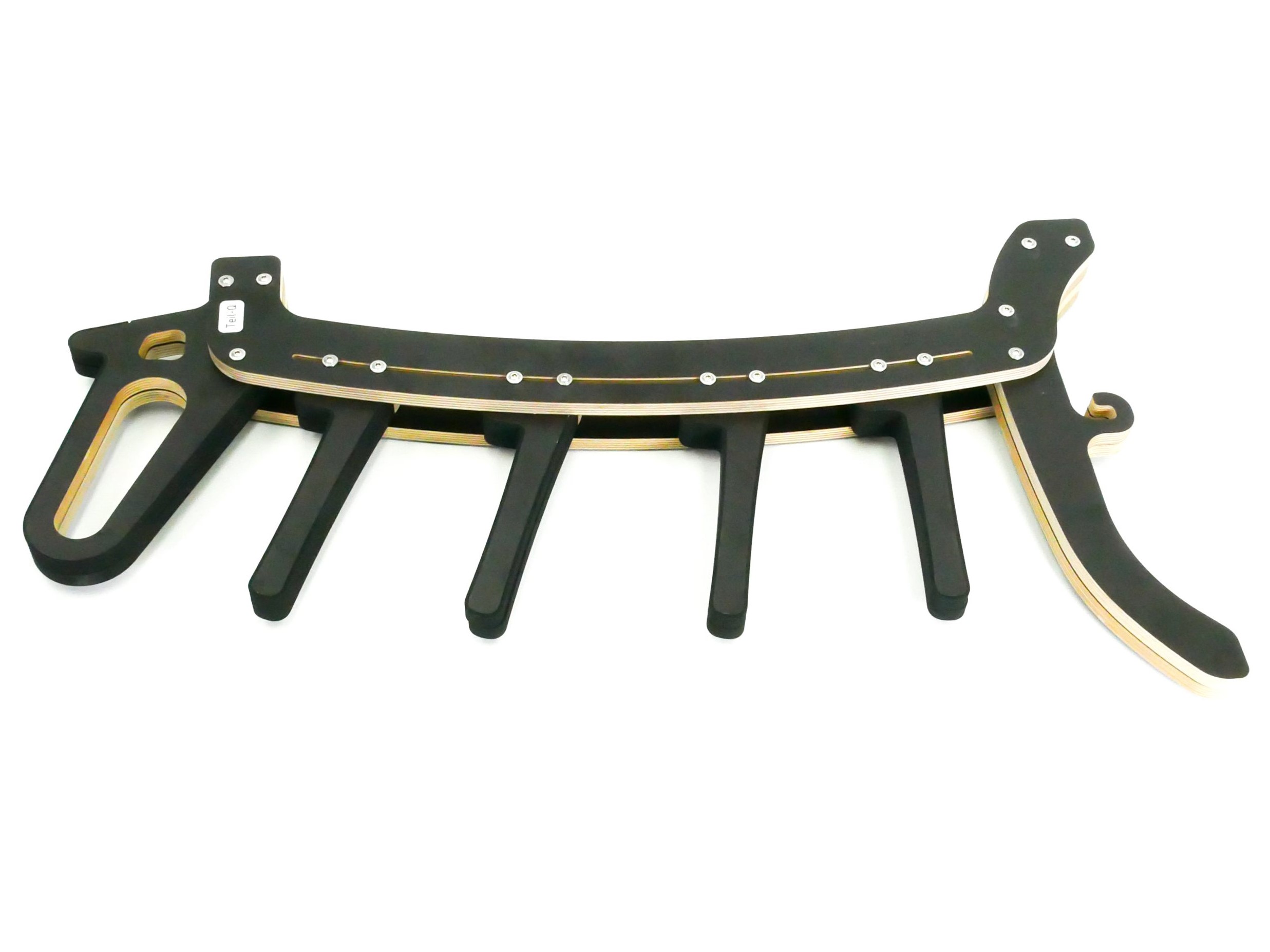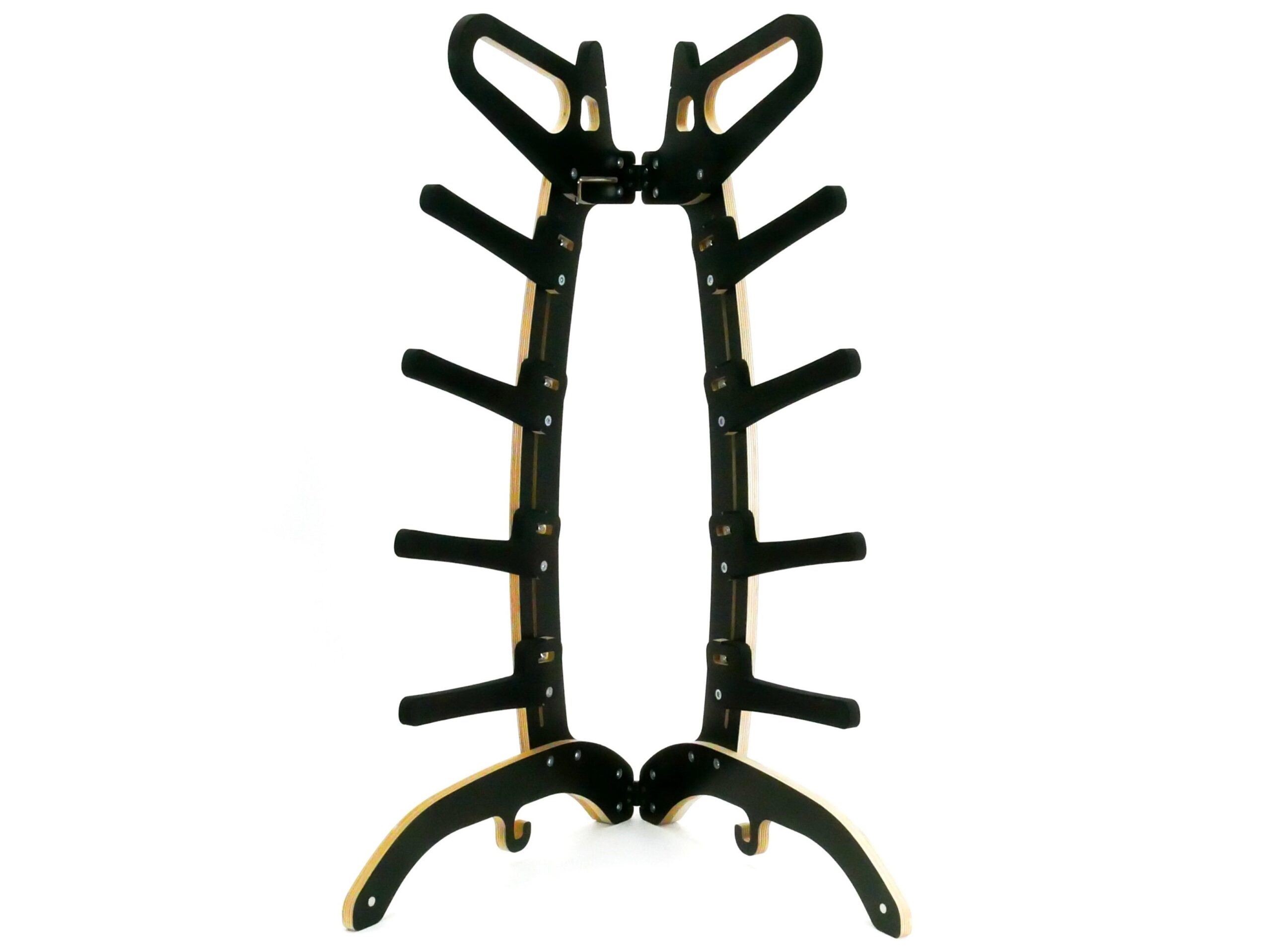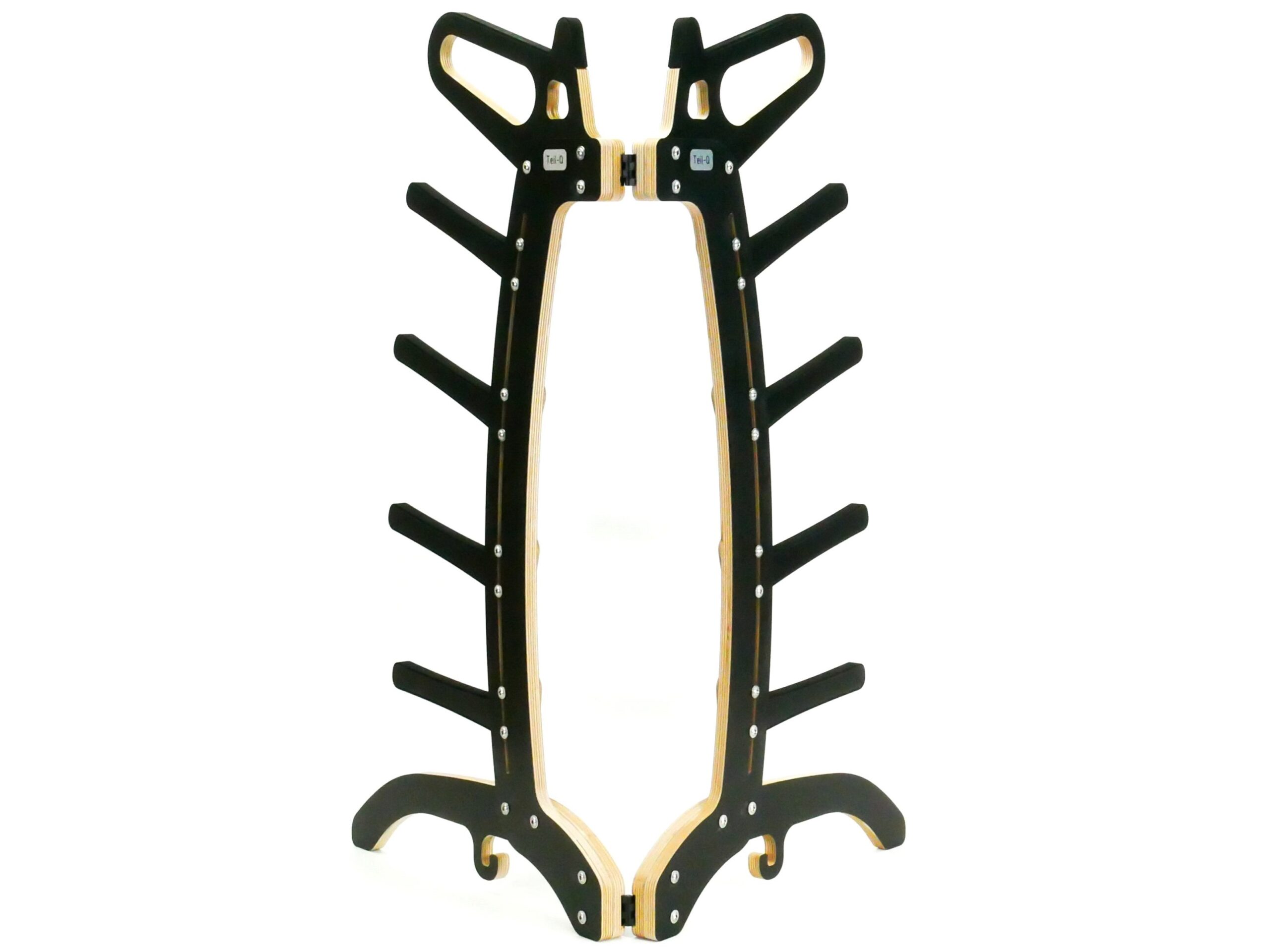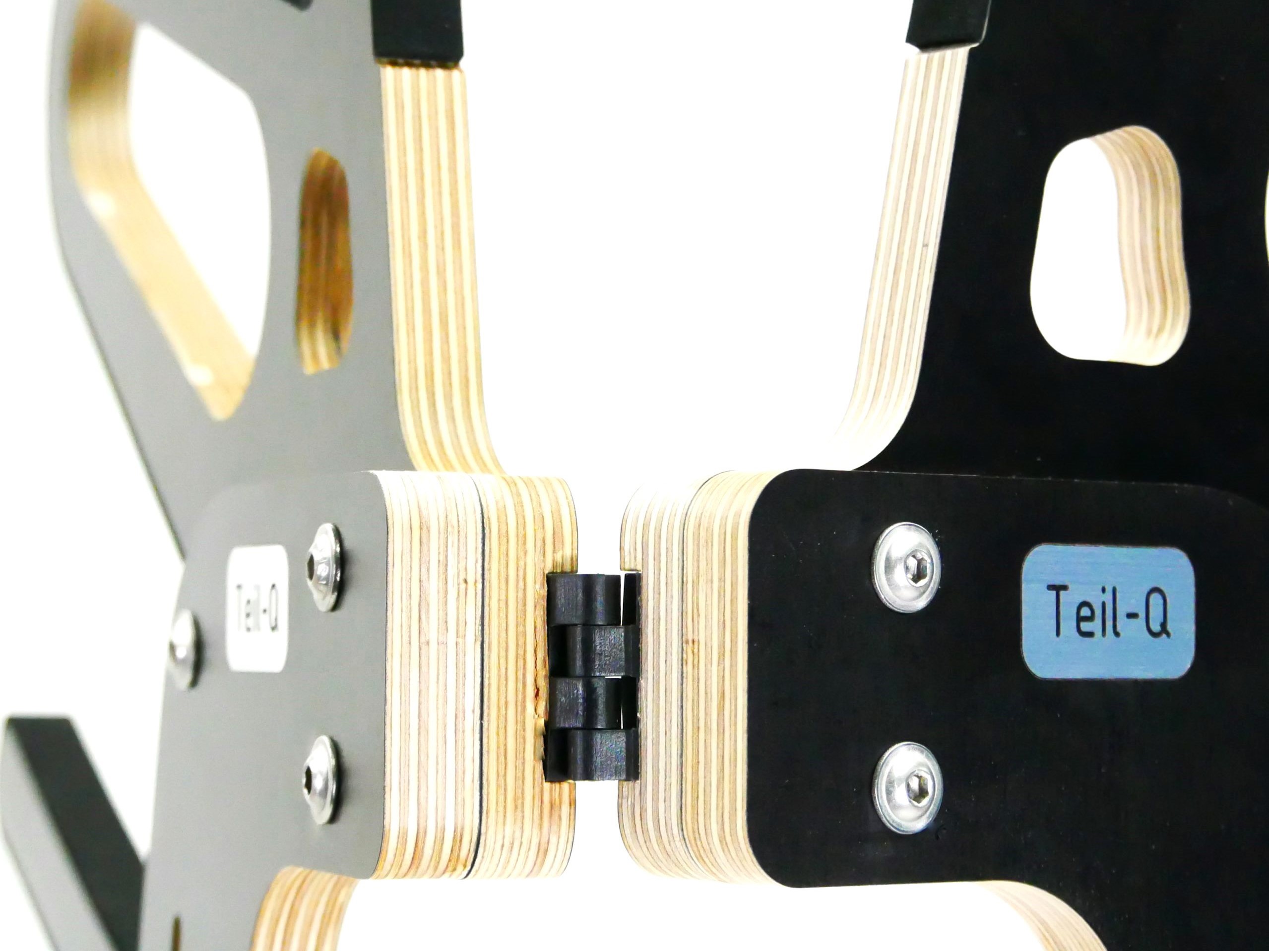 Wenn der Modellständer aufgeklappt ist sieht er aus wie ein kleiner Alien, daher auch sein Name. Die Holzteile sind CNC gefräst aus hochwertigen und stabilen 15mm Birkenmultiplex. Die Positionen für die Scharniere sind bereits vorgefräst.