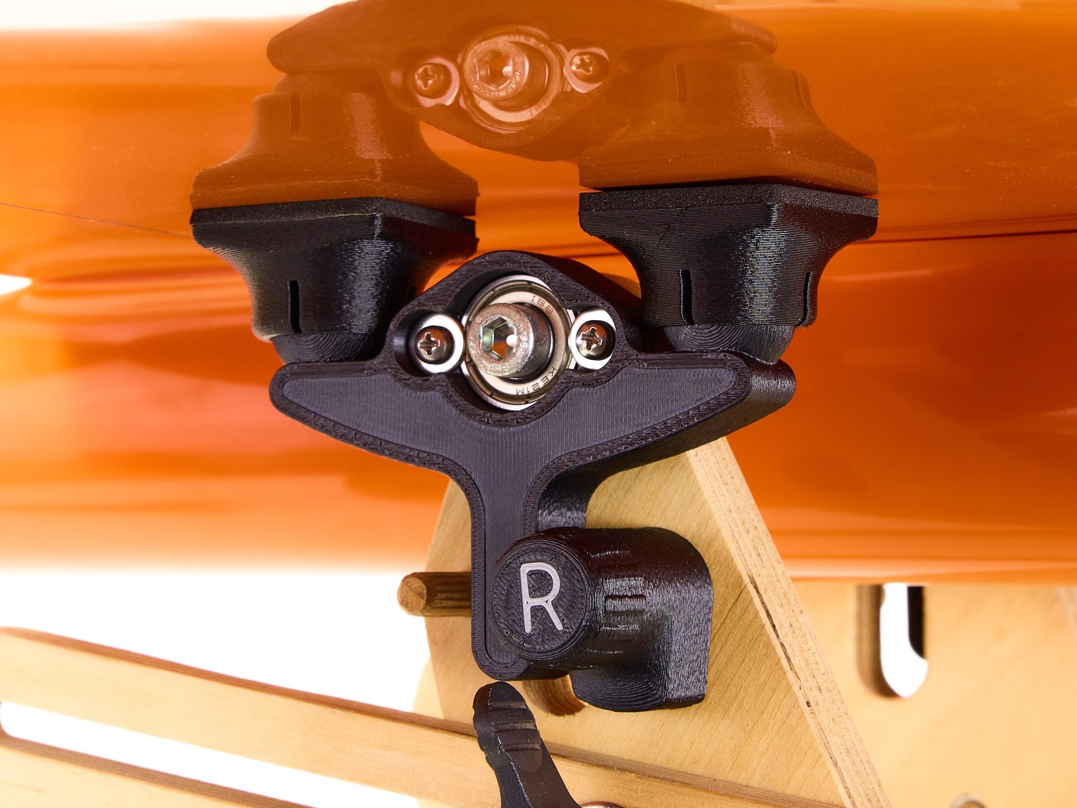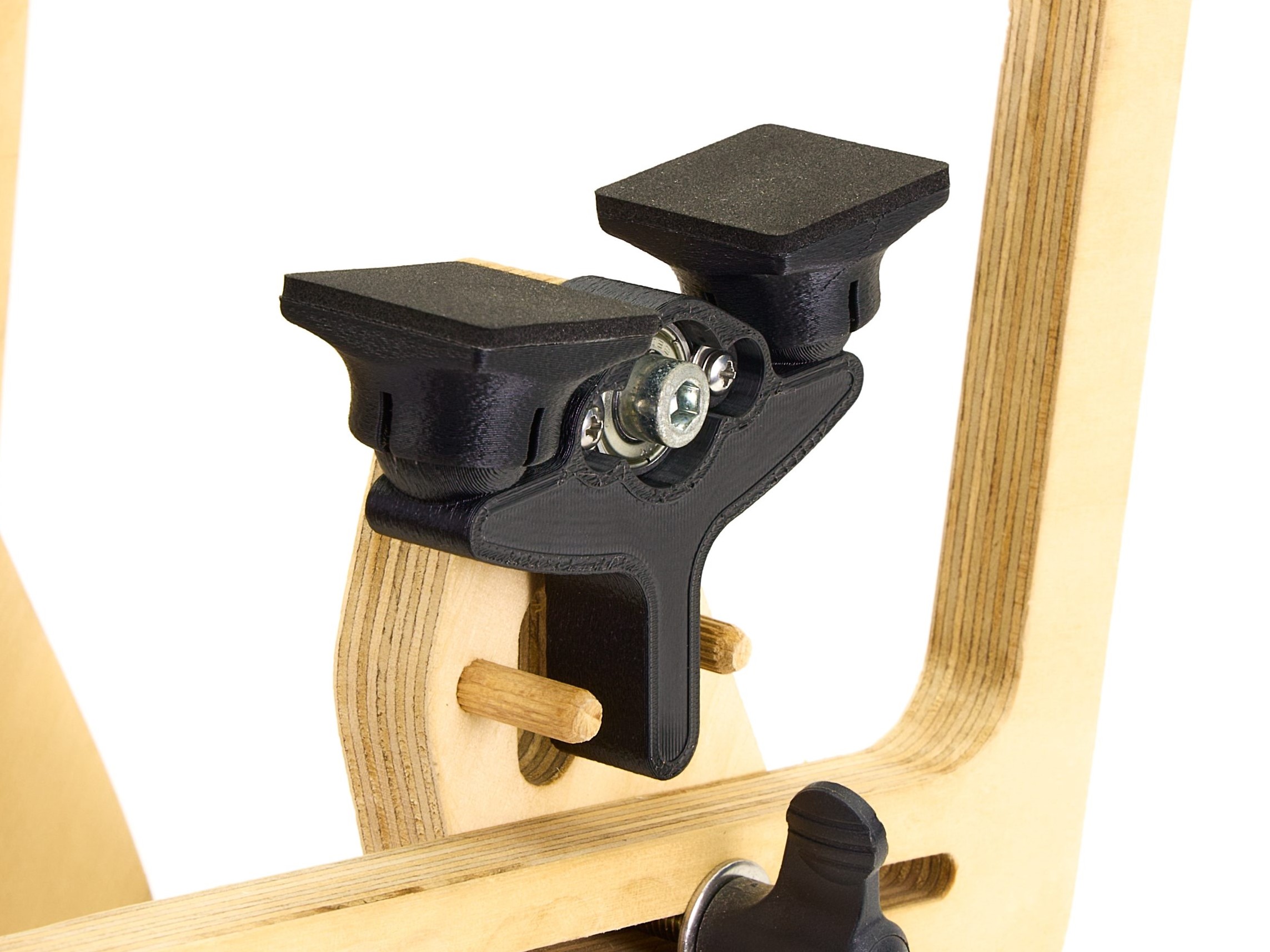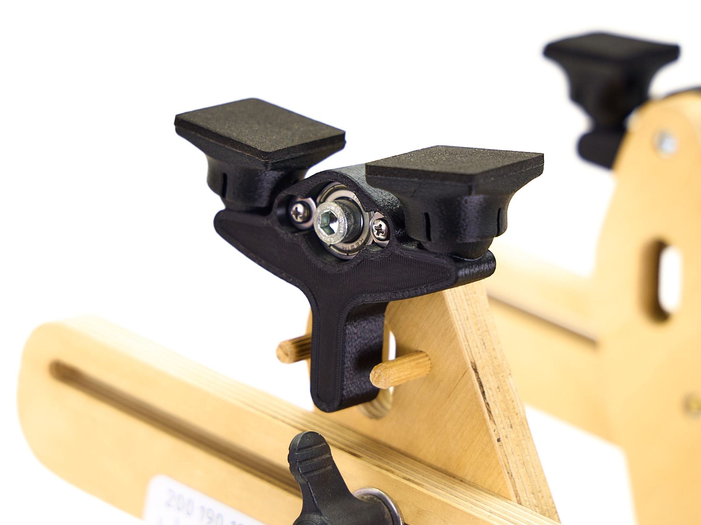 Optimale Anpassung dank Kugelgelenk: Die Auflagen der Wippe lassen sich über ein flexibles Kugelgelenk optimal an die Flächengeometrie des Modells anpassen. Dies gewährleistet eine perfekte Passform an die Form der Tragflächen.