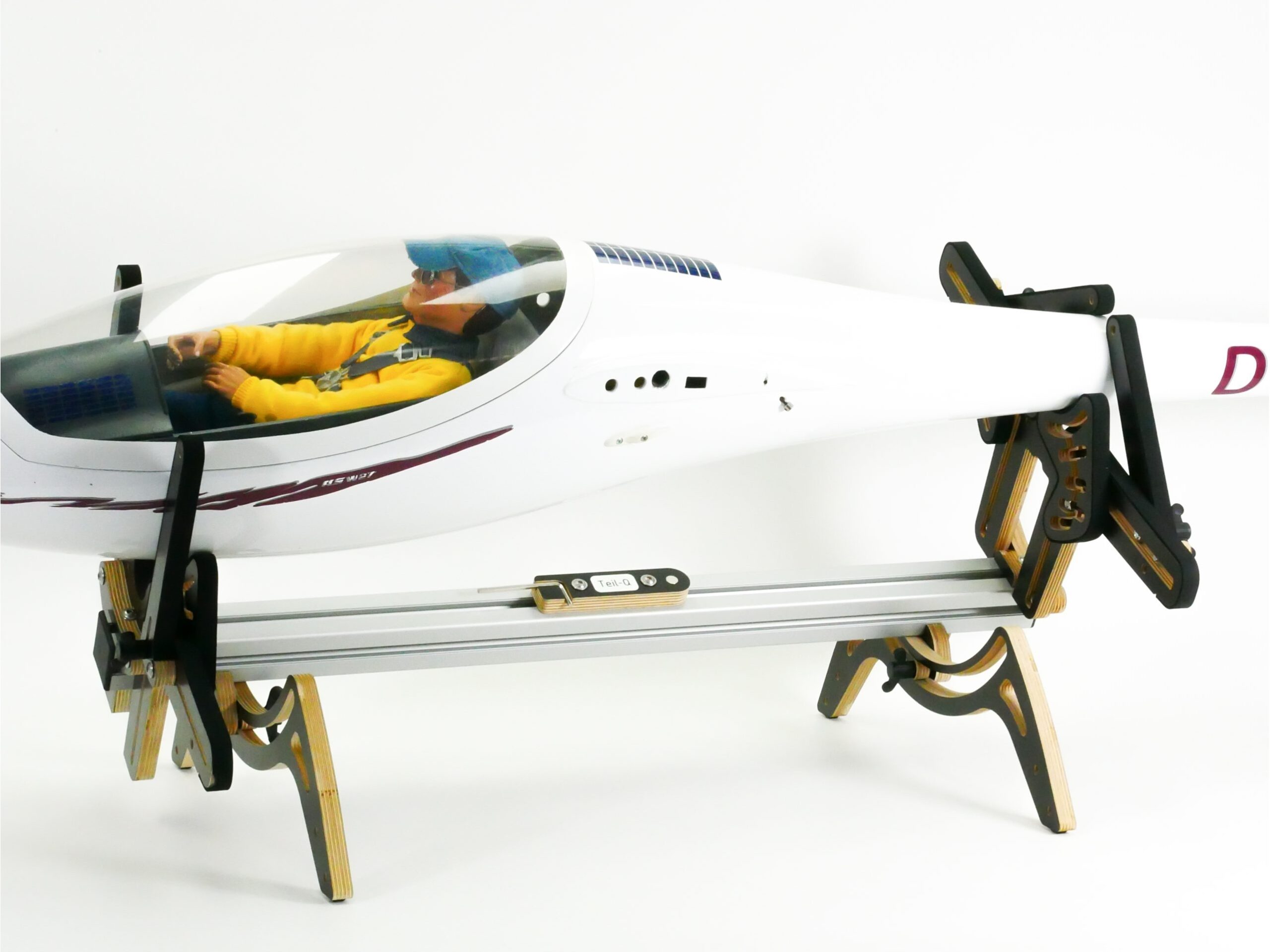 Die Holzteile sind CNC gefräst aus hochwertigen und stabilen 15mm Birkenmultiplex. Die Holzteile werden mit 3mm selbstklebenden festem Gummi an den Auflagestellen beklebt, damit das Modell sicher gehalten und nicht beschädigt wird. Bei der Black Edition ist das Holz zusätzlich mit einer 220 g/m² dicken Phenolharzbeschichtung versehen, die den Modellständer besonders widerstandsfähig macht.