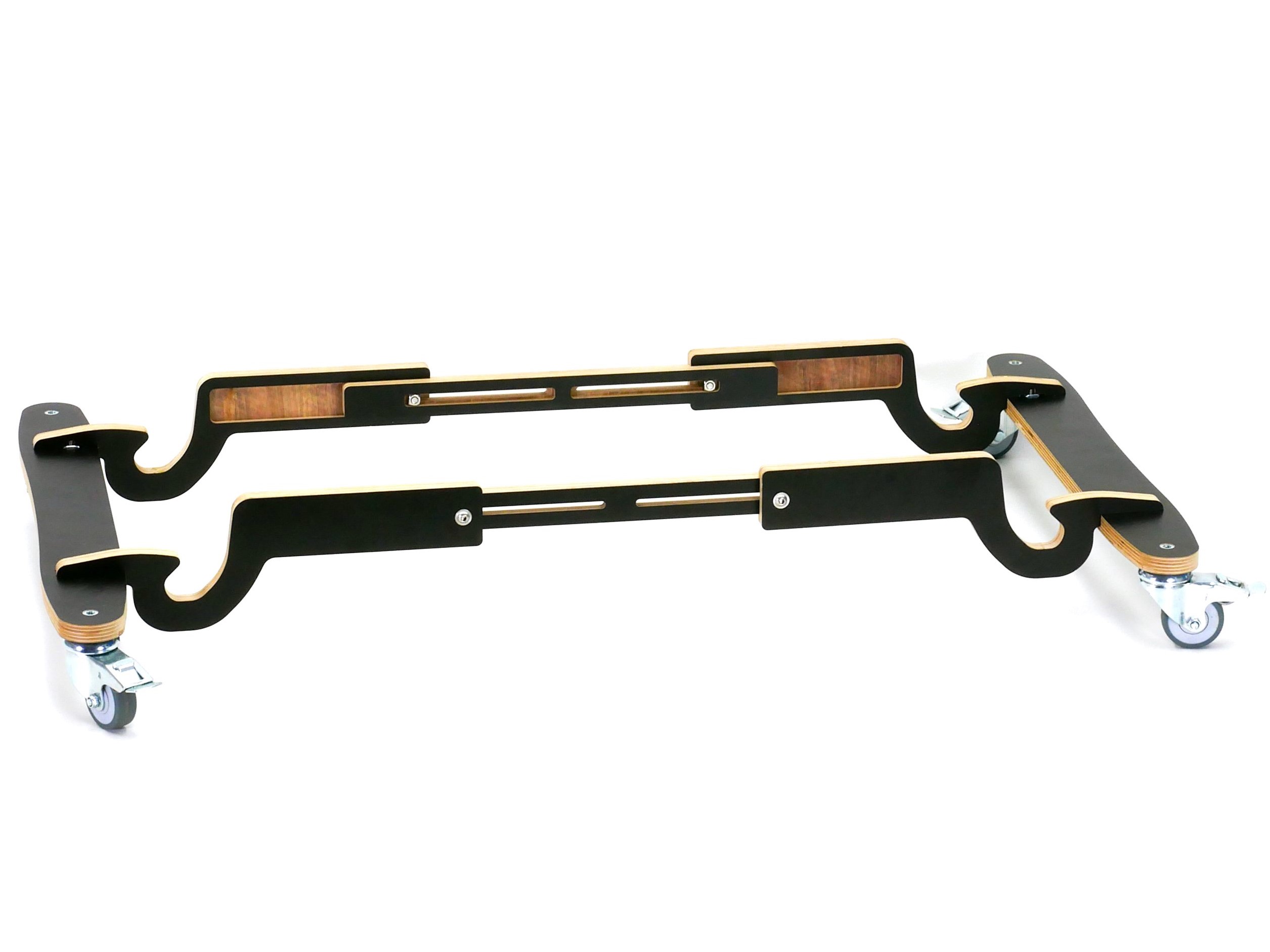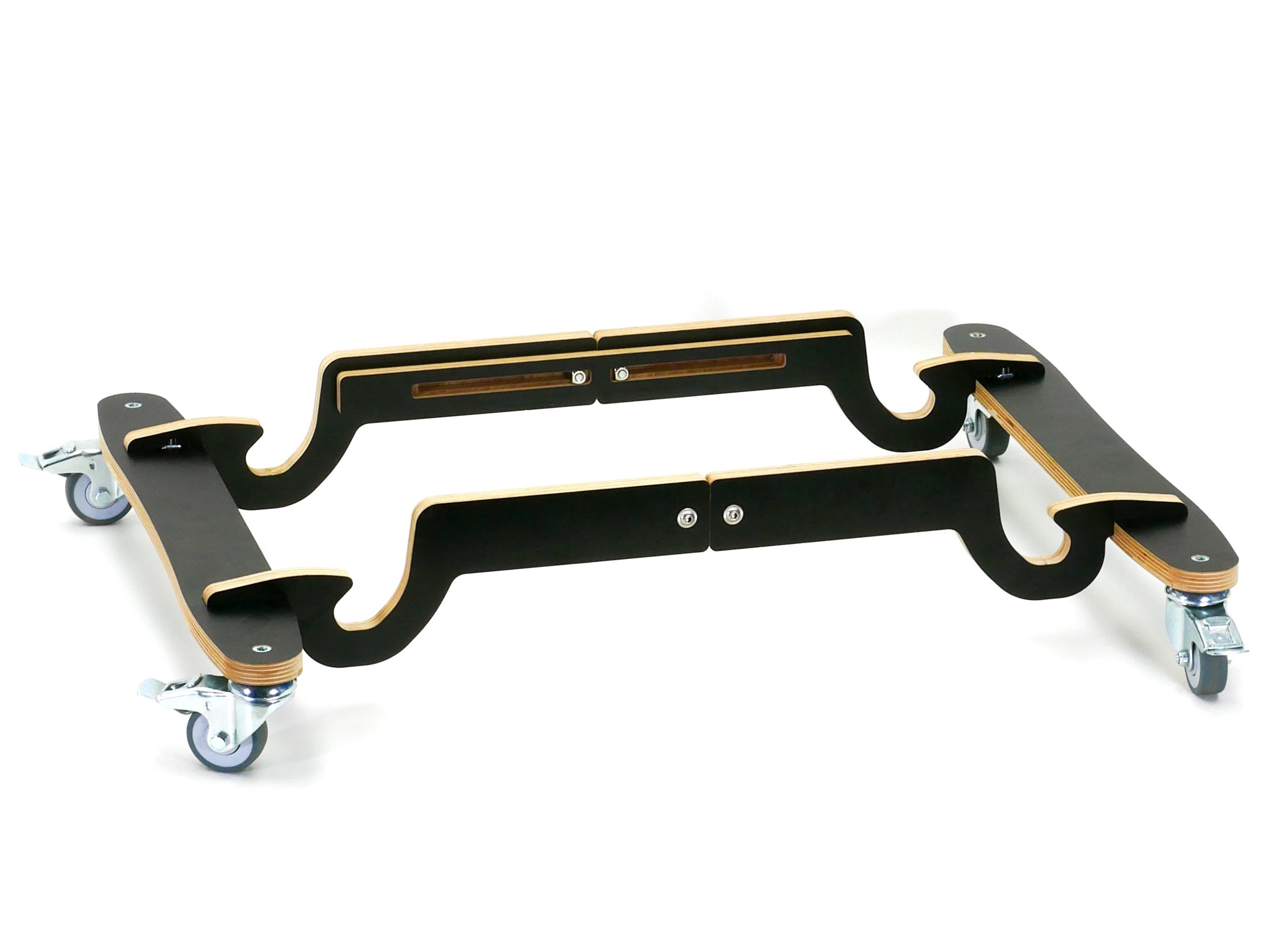 Die Holzteile sind CNC gefräst aus hochwertigen und stabilen 15mm Birkenmultiplex. Das Holz ist mit einer dunklen 220 g/m² dicken Phenolharzbeschichtung versehen, die den Rollwagen besonders widerstandsfähig macht.