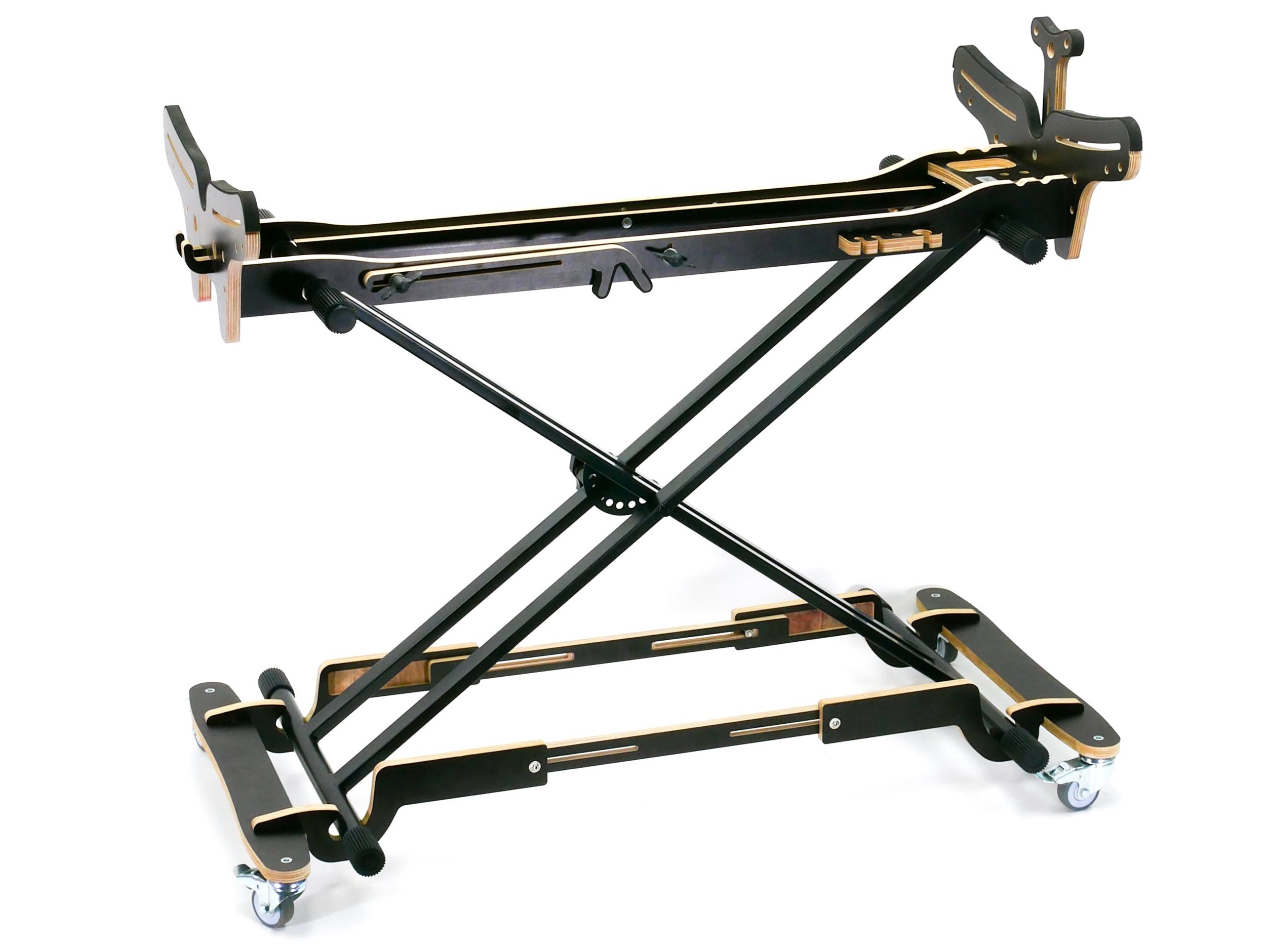 Der Rollwagen ist die optimale Ergänzung, um einen Modellständer mit Keyboardständer zu einem mobilen Modellständer zu erweitern. Der Rollwagen ist dabei in einem Bereich von 460mm bis 760mm Rohrabstand stufenlos einstellbar. Der aufgesetzte Modellständer wird um 60mm erhöht.