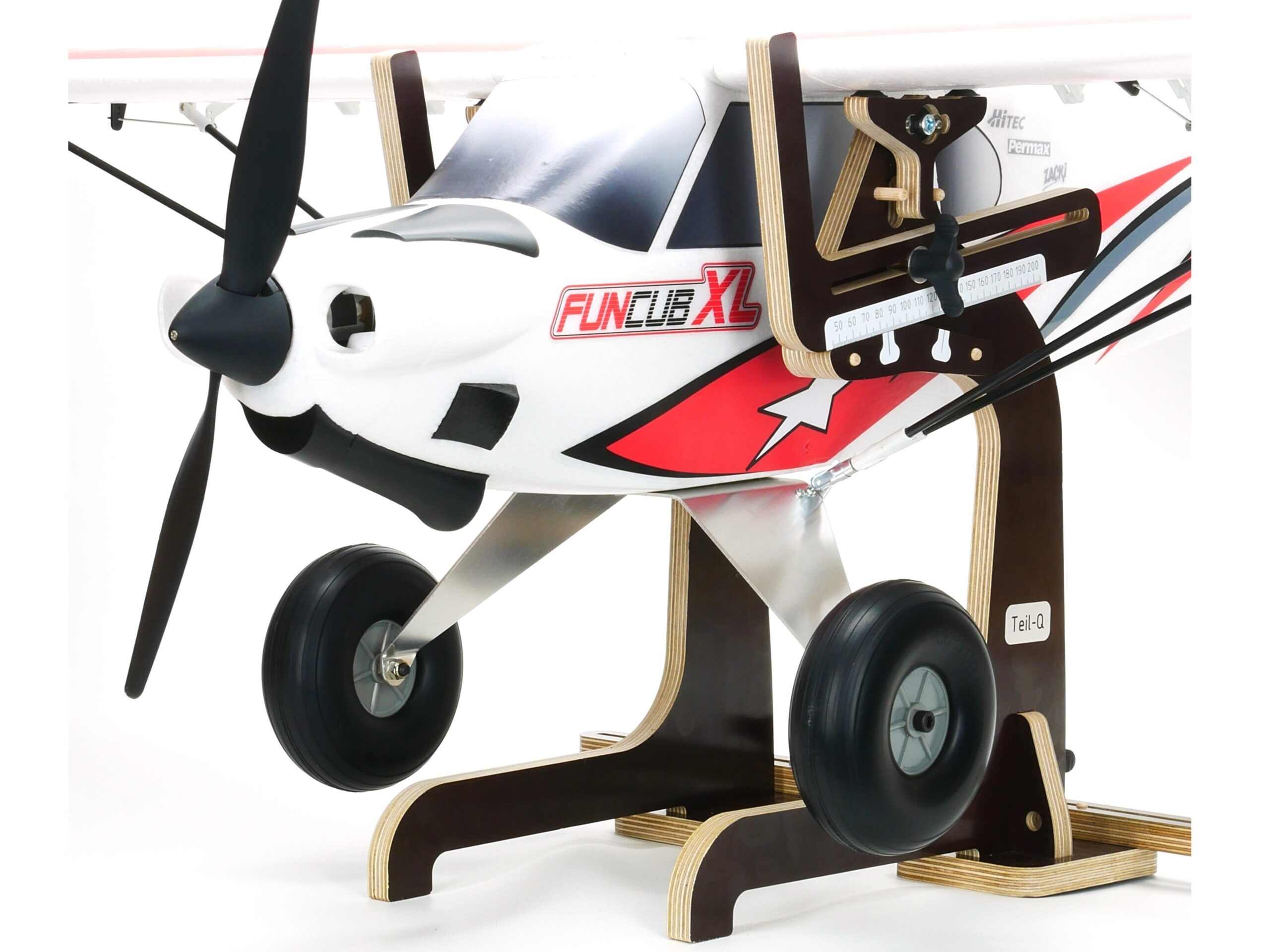 Die Holzteile sind CNC gefräst aus hochwertigen und stabilen 15mm Birkenmultiplex. Das Stecksystem macht die Schwerpunktwaage zusätzlich stabil und dadurch auch einfach im Zusammenbau. Die Holzteile werden mit selbstklebendem Gummi an den Auflagestellen beklebt, damit das Modell sicher gehalten und nicht beschädigt wird.