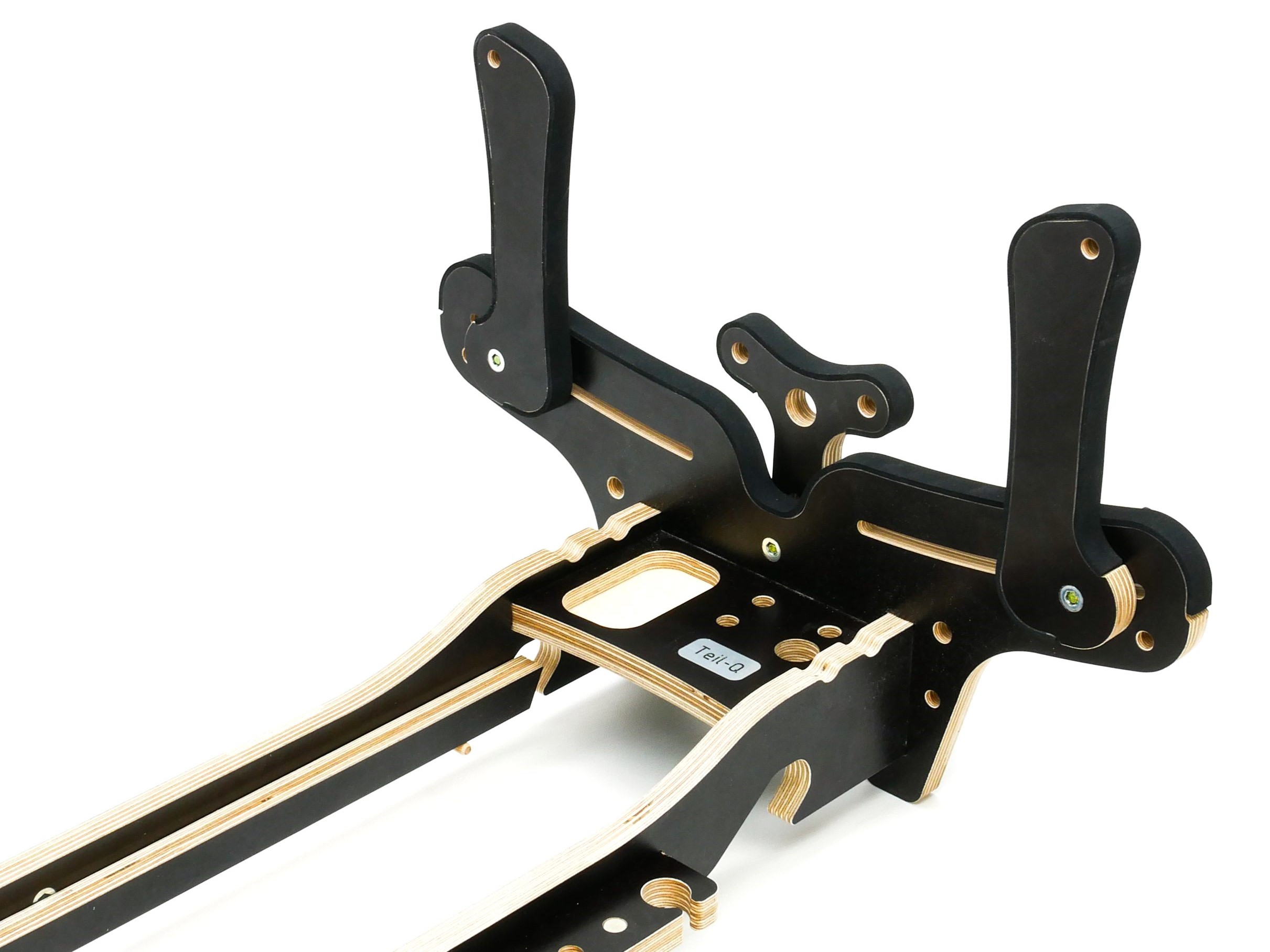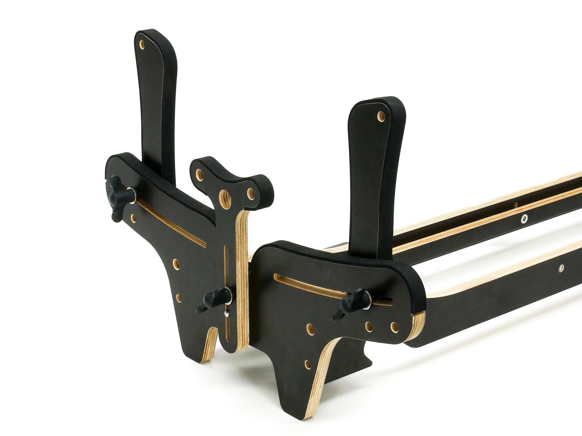 Die Holzteile sind CNC gefräst aus hochwertigen und stabilen 15mm Birkenmultiplex. Das Stecksystem macht den Modellbauständer zusätzlich stabil und er lässt sich dadurch einfach zusammenbauen. Die Holzteile werden mit 3mm selbstklebenden Gummi an den Auflagestellen beklebt, damit das Modell sicher gehalten und nicht beschädigt wird. Bei der Black Edition ist das Holz zusätzlich mit einer 240 g/m² dicken Phenolharzbeschichtung versehen, die den Modellständer besonders widerstandsfähig macht.